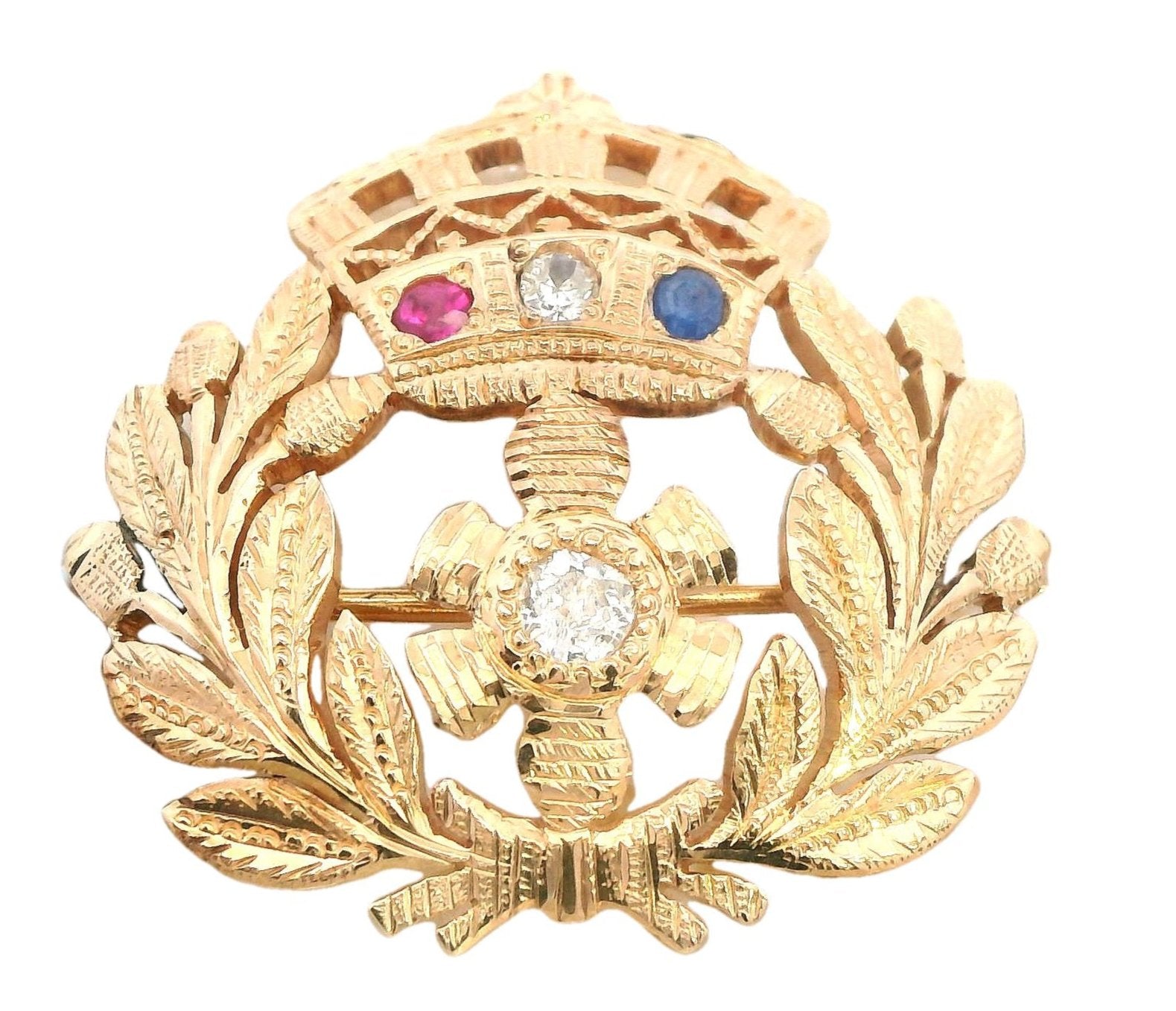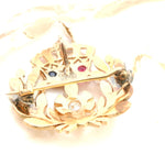 Stunning 18ct Yellow Gold Brooch/Pendant Set with Diamonds, Sapphire, and Ruby
