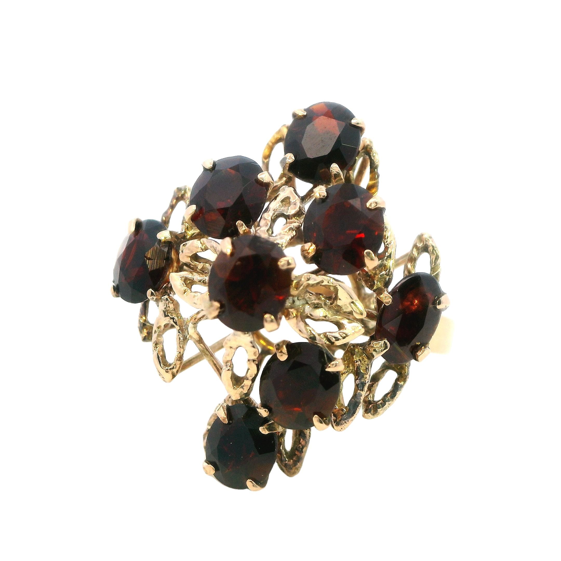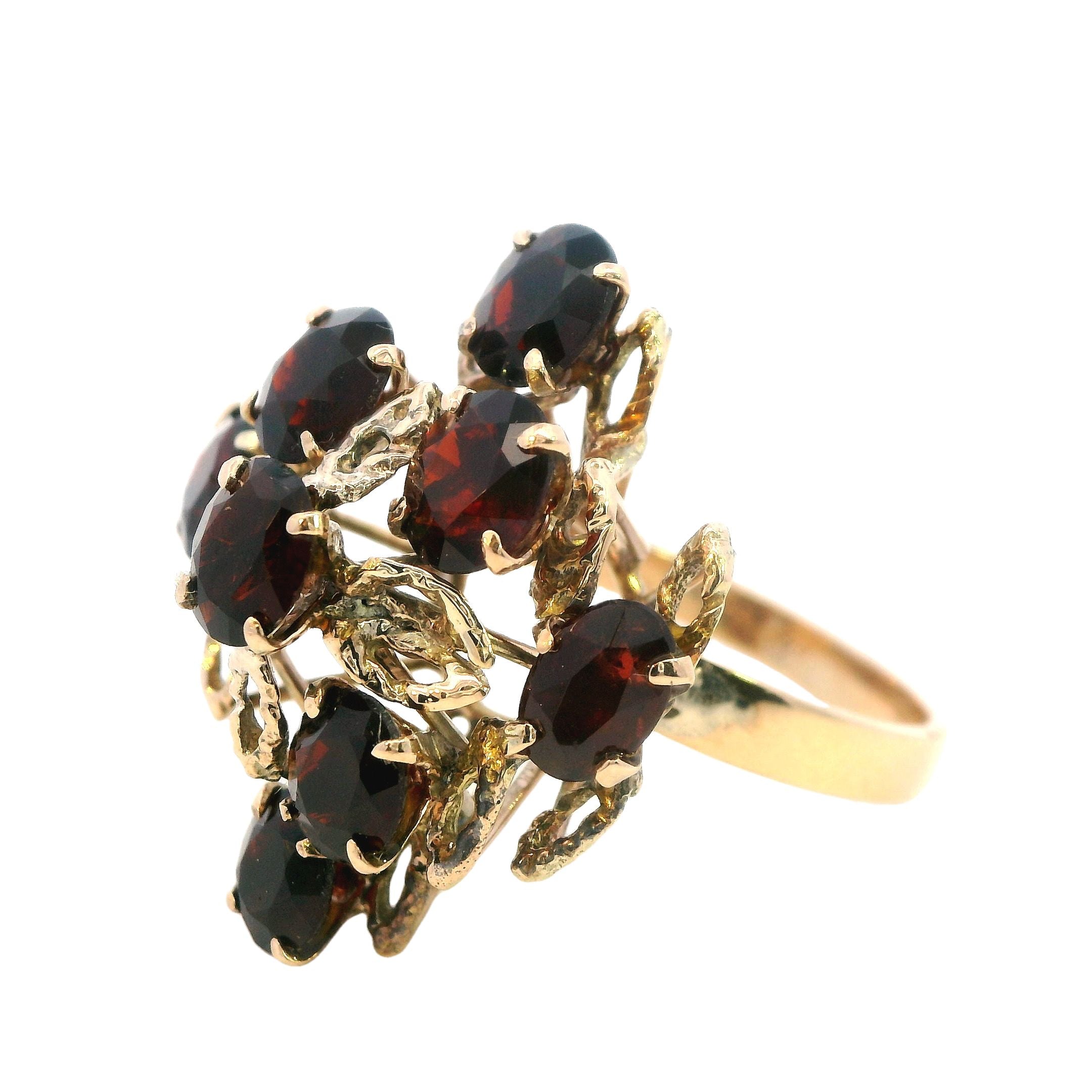 Exquisite Cast and Hand Assembled Yellow Gold Garnet Ring