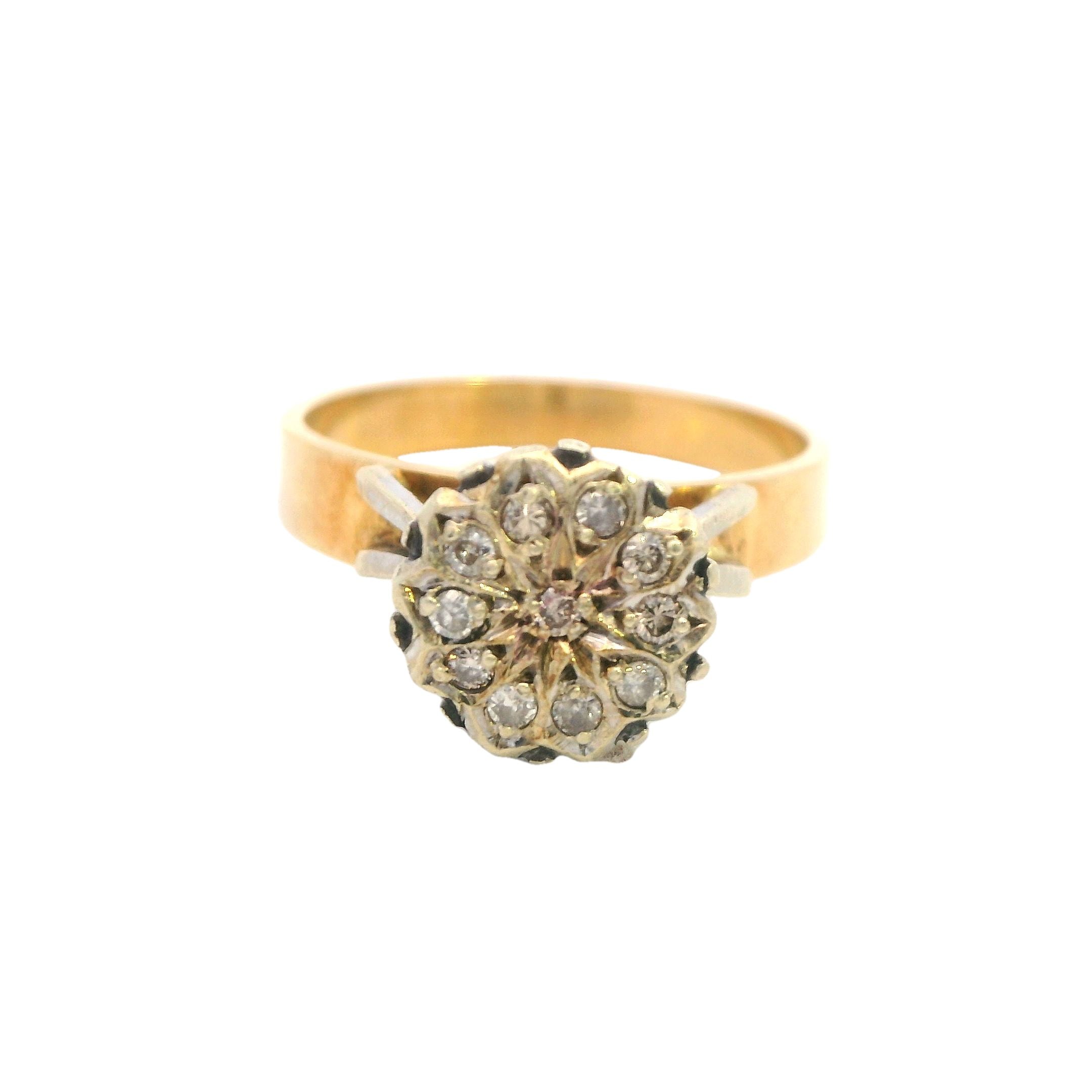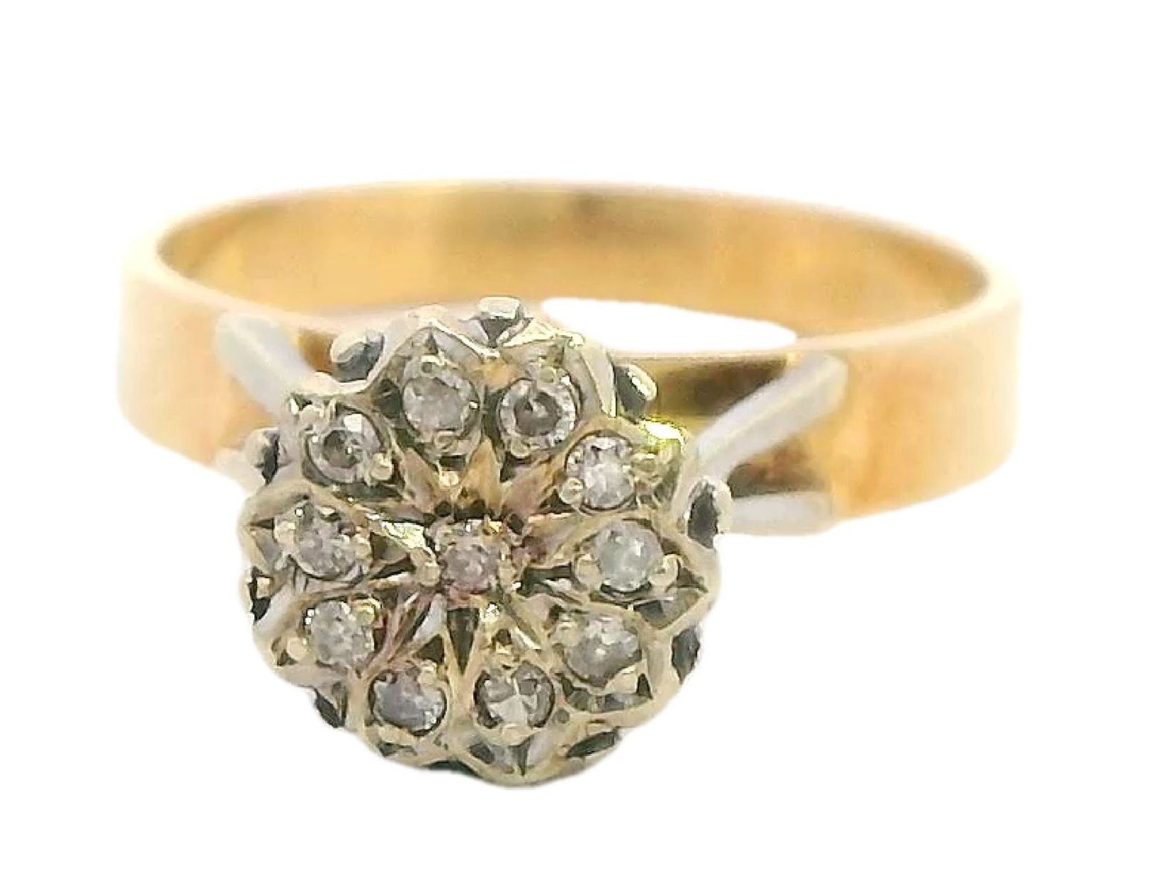 STUNNING 18CT YELLOW & WHITE GOLD 11 STONE DIAMOND CLUSTER RING