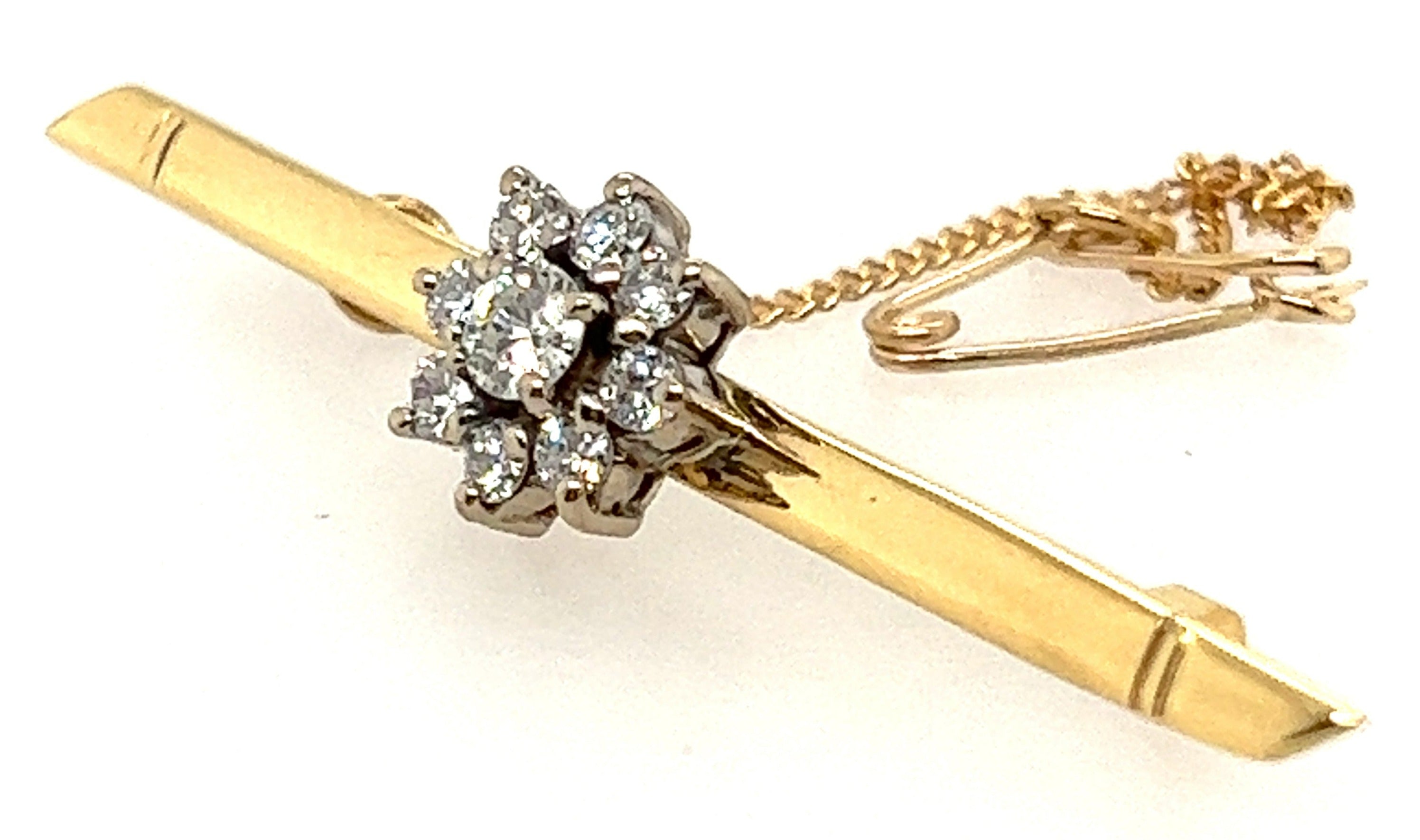 18ct yellow and white Gold Bar Brooch with Diamonds