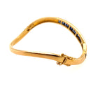 18ct YELLOW GOLD TWISTED HINGED BANGLE WITH SAPPHIRE.