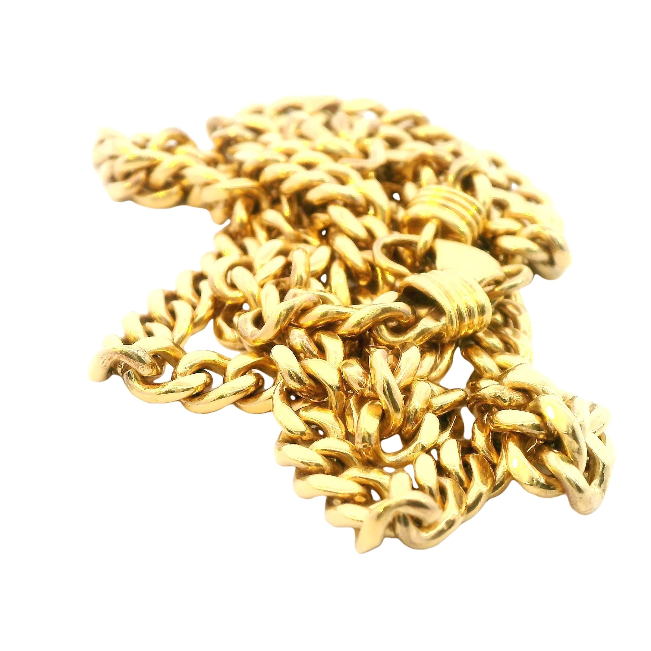 This magnificent 18ct yellow gold curb link necklace is a true statement piece, combining elegance with substantial weight and craftsmanship. Measuring 65cm in length, the links are perfectly sized at 7.5mm x 6.3mm x 2.7mm, making this necklace both stylish and substantial. It features a secure parrot clasp catch, ensuring it stays firmly in place while adding to its sleek design. This luxurious piece is ideal for those who appreciate fine jewelry and are looking to invest in something truly valuable.