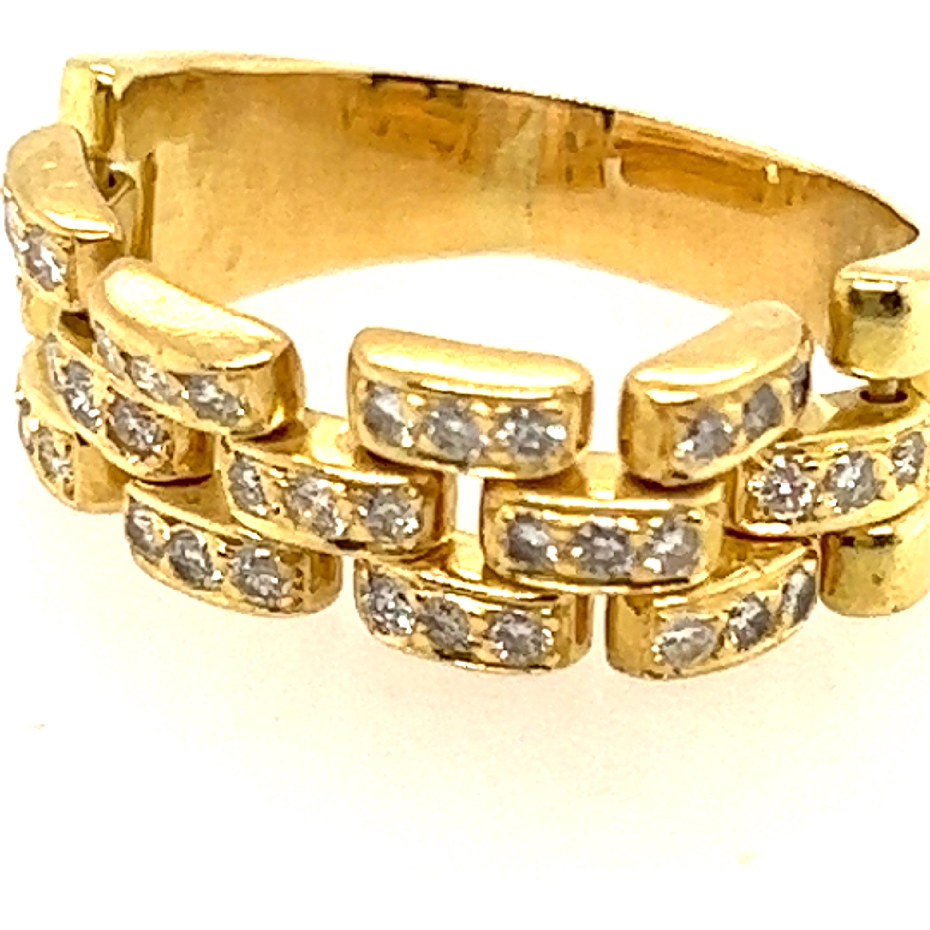 Indulge in the luxurious allure of this stunning 18ct yellow gold diamond set chain ring, exclusively available from The Exclusive Jewellery and Antiques Company.
