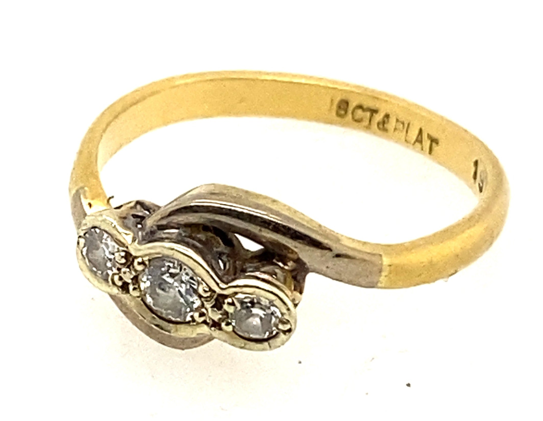 EXQUISITE 18CT YELLOW & WHITE GOLD 3 STONE DIAMOND RING