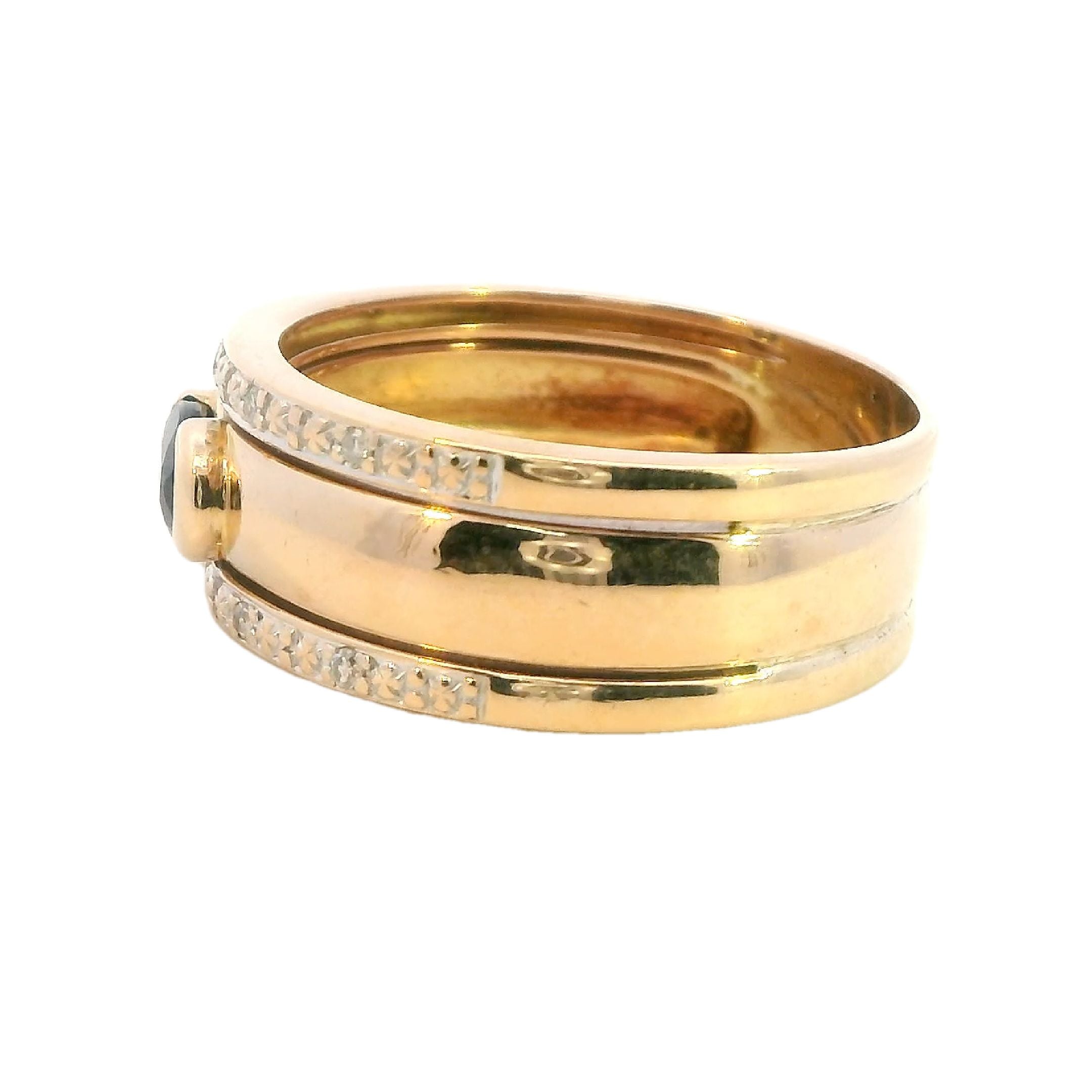 This elegant 9ct yellow gold sapphire and diamond ring is a perfect blend of sophistication and craftsmanship. Ideal for any jewelry collection, it offers timeless beauty and makes a wise investment for the future. Embrace the allure of sapphire and the brilliance of diamonds by adding this exquisite piece to your collection today.