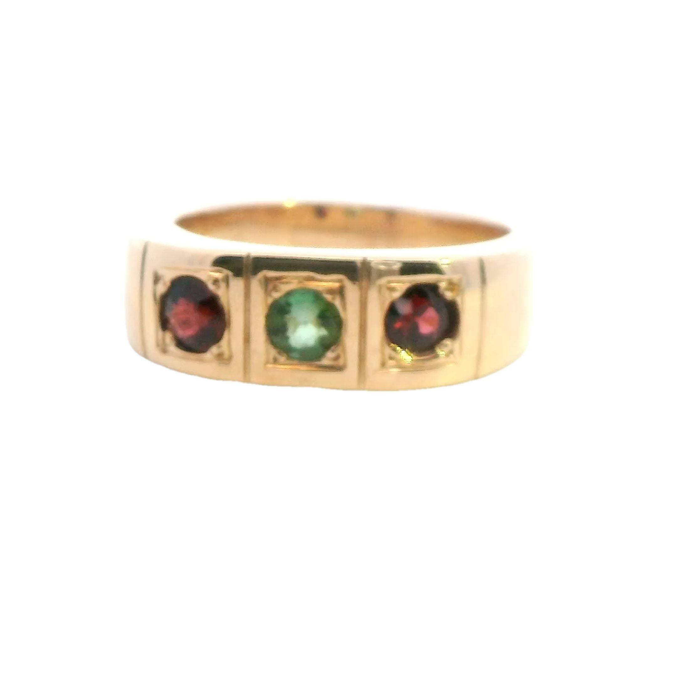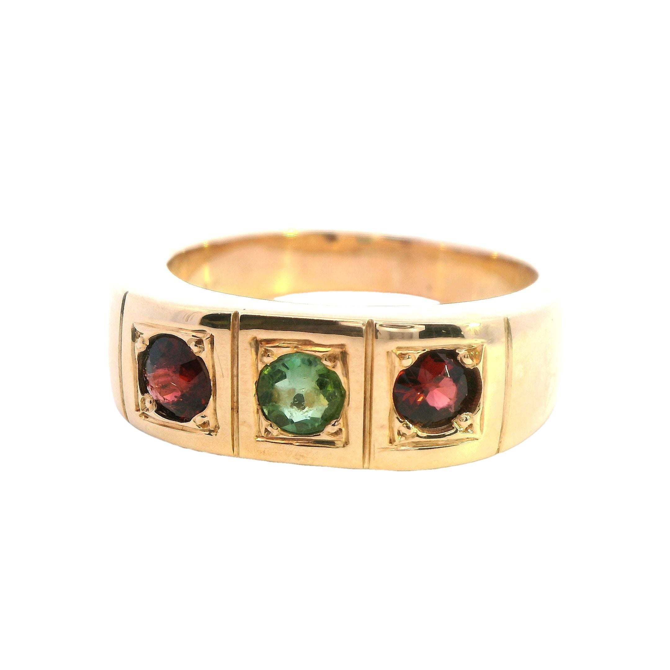 9ct Yellow Gold & Tourmaline Ring Green & Orange Tourmaline