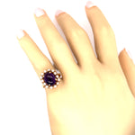 ELEGANT 18CT YELLOW GOLD 15 STONE AMETHYST & CULTURED PEARL CLUSTER RING