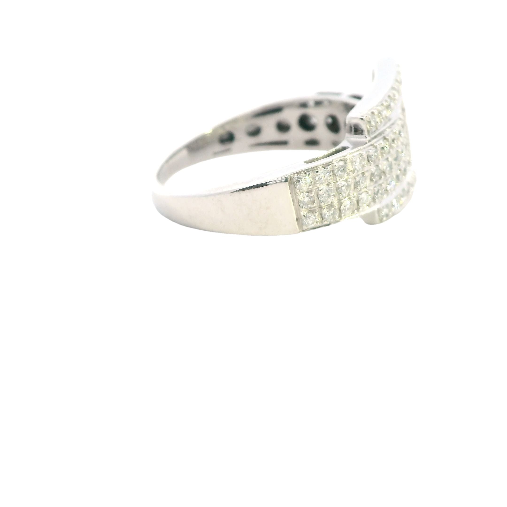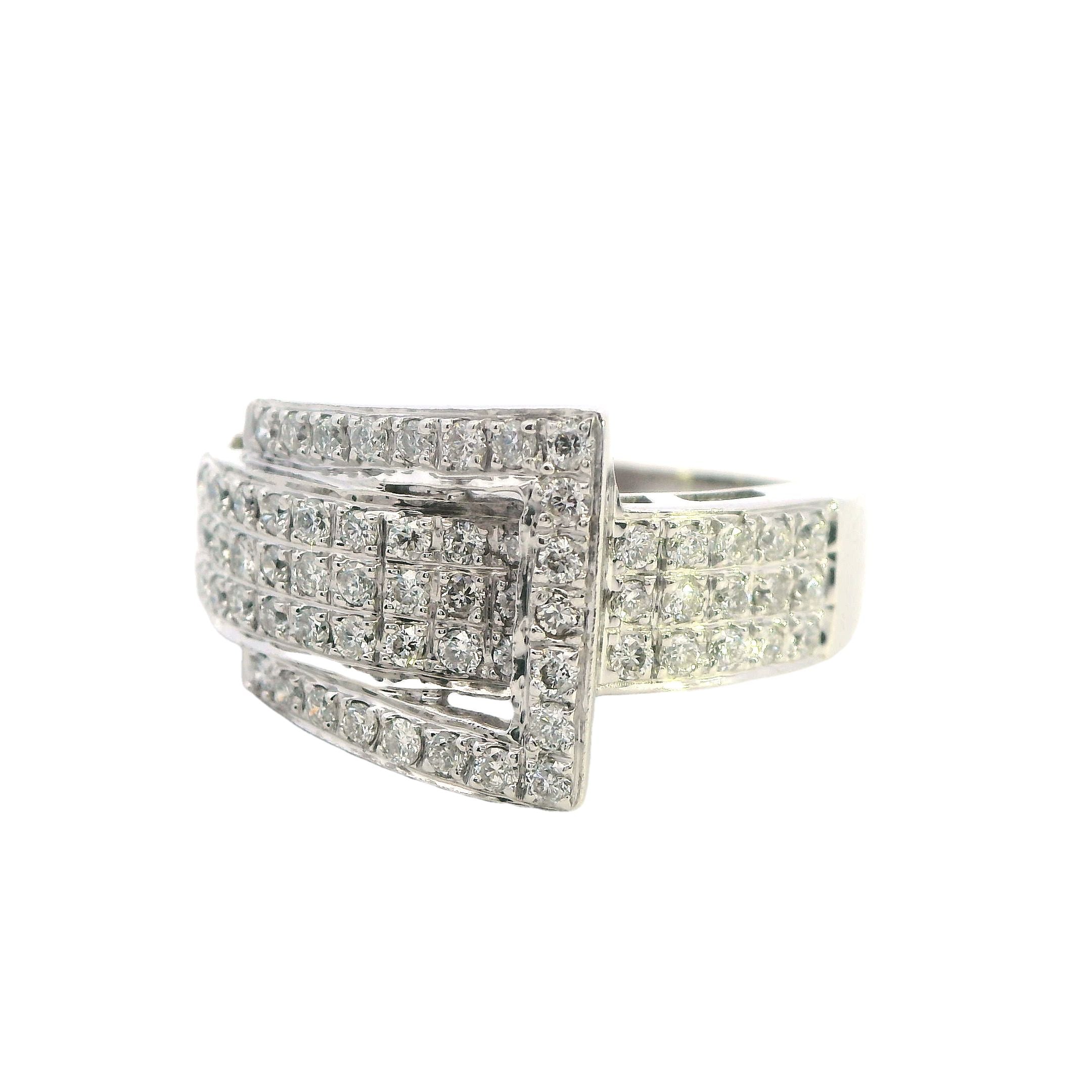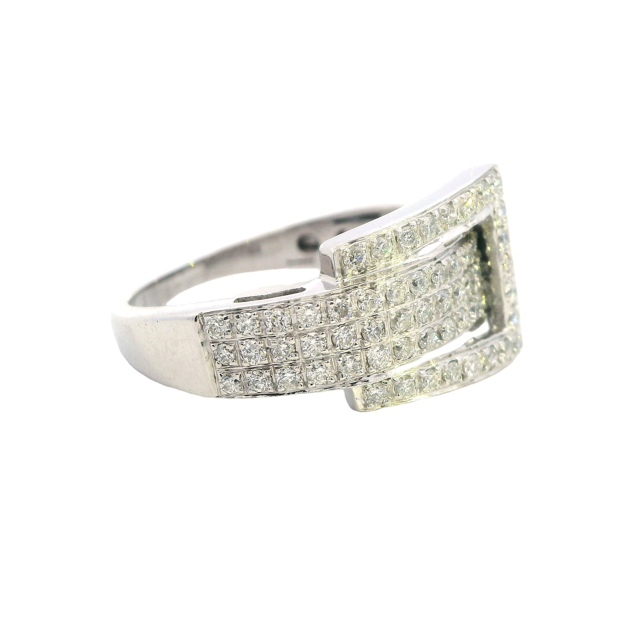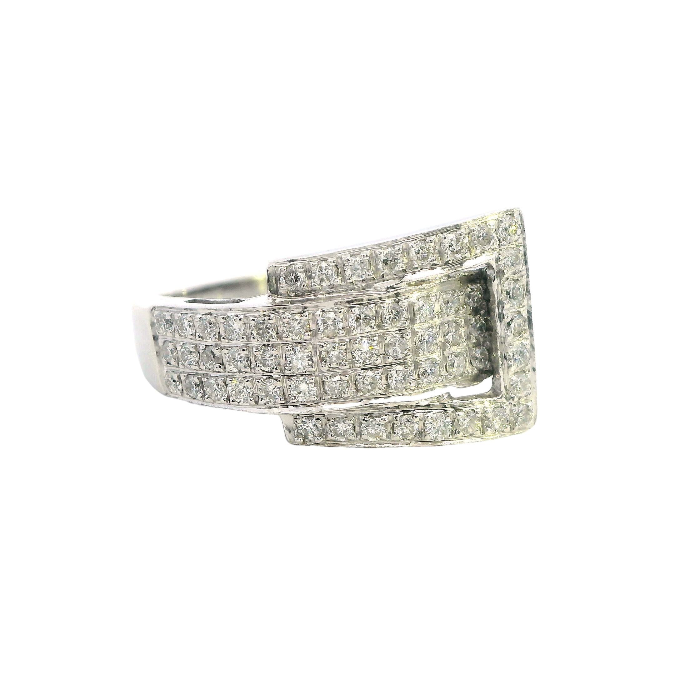 Elegant 10ct White Gold Diamond Set Buckle Ring – 1.00ct of Brilliant Cut Diamonds