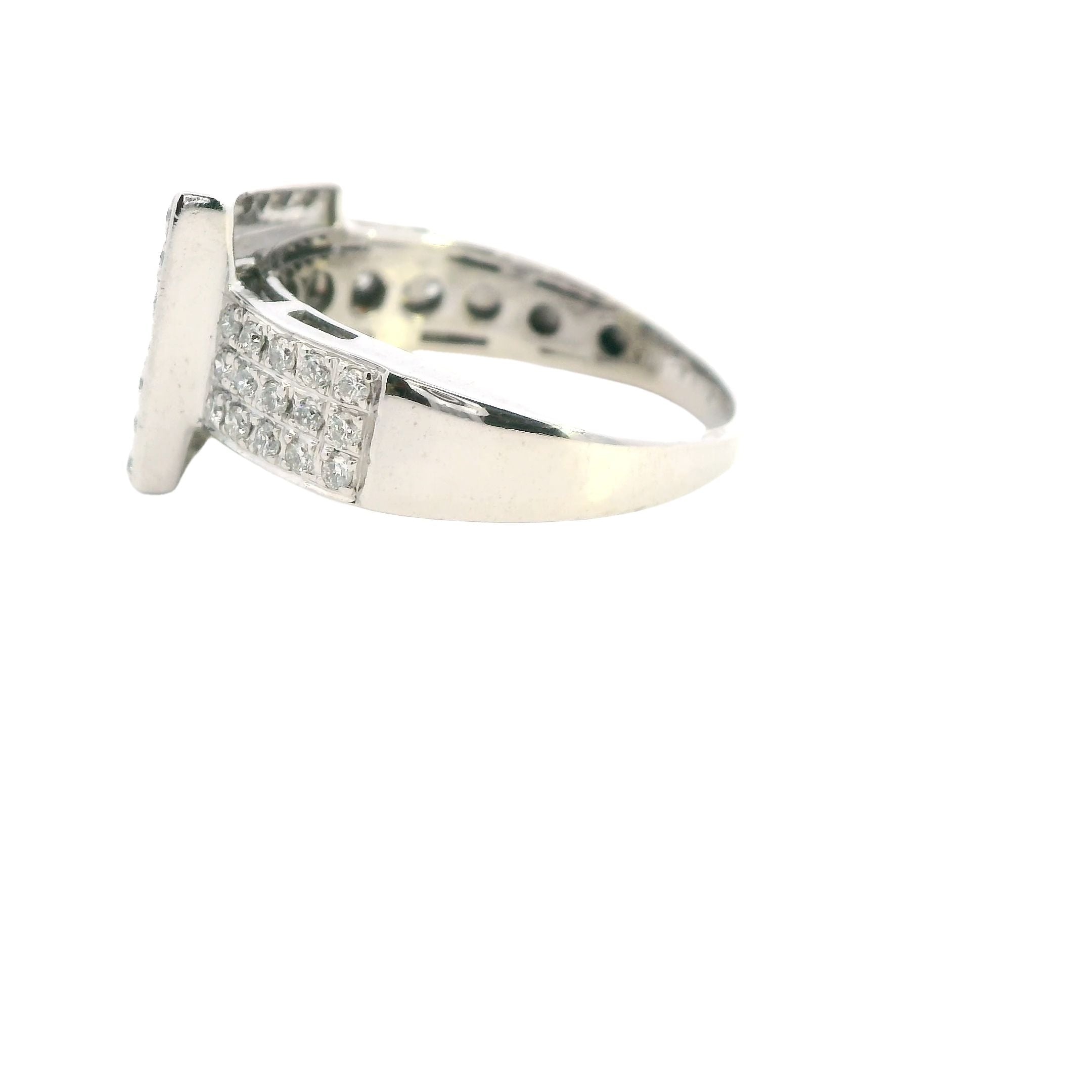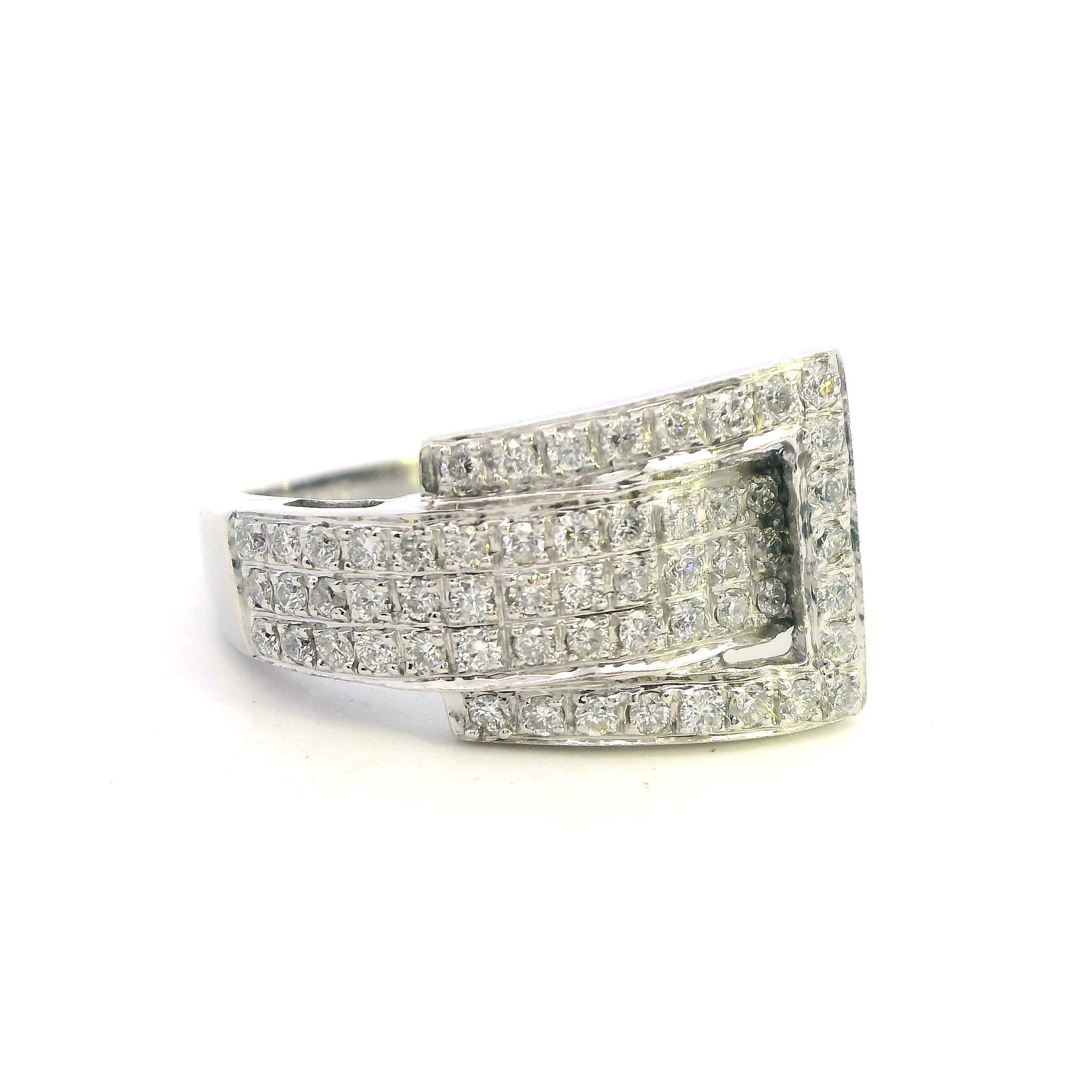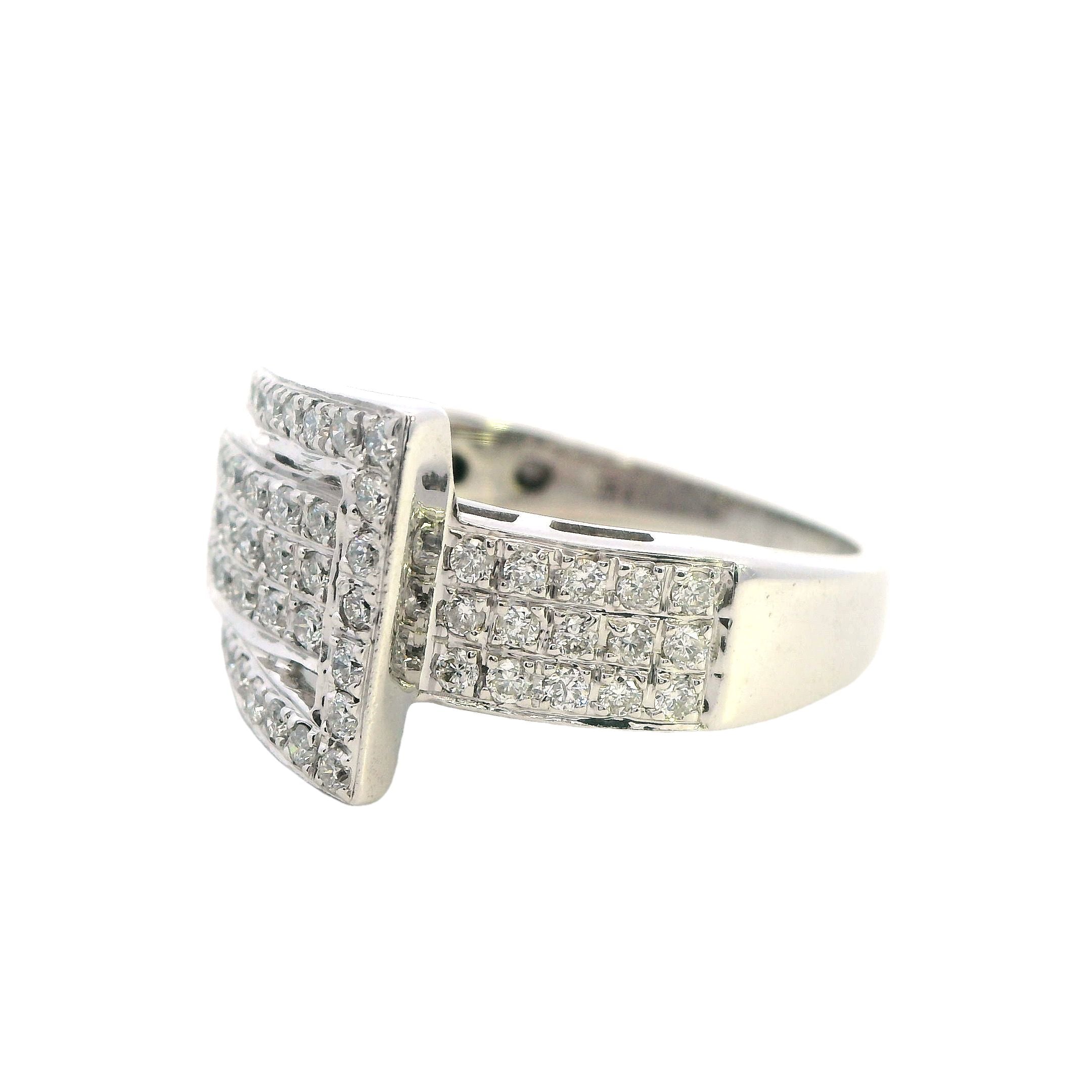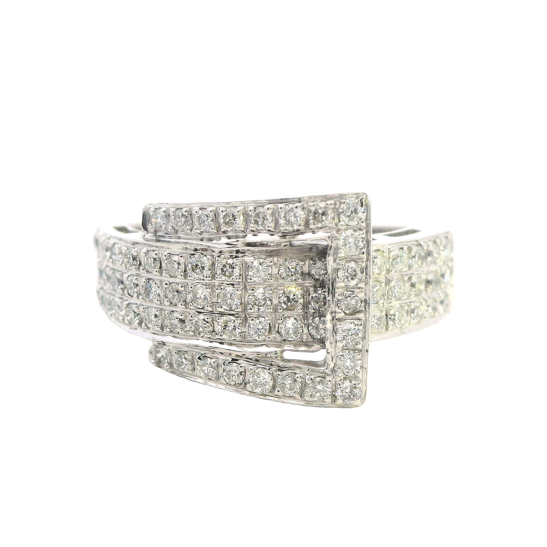 Elegant 10ct White Gold Diamond Set Buckle Ring – 1.00ct of Brilliant Cut Diamonds