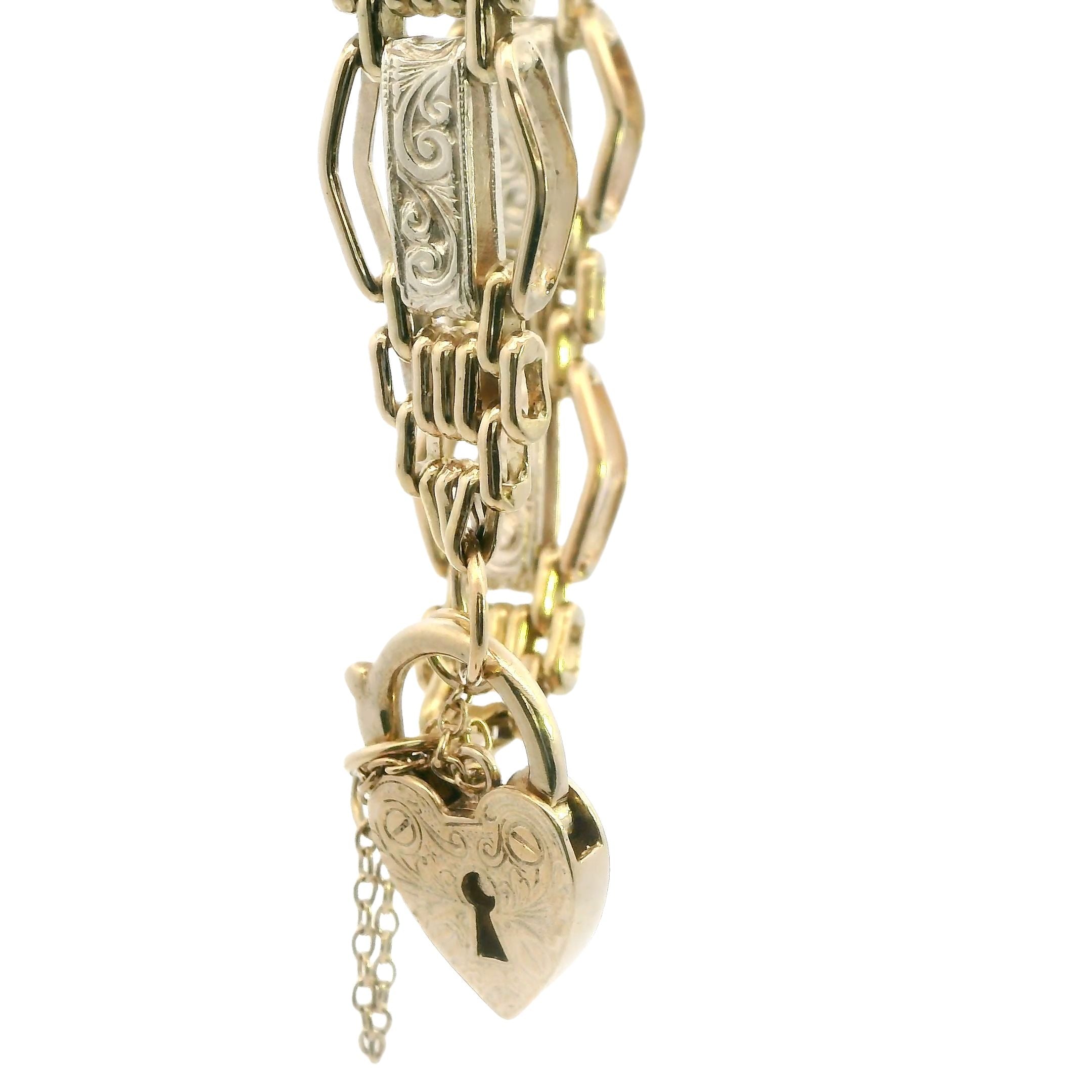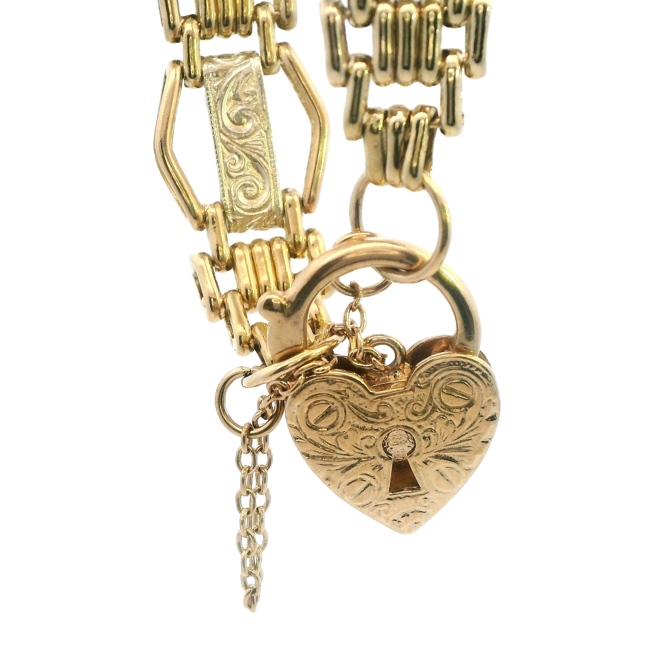 Sublime 9ct Yellow Gold Gate Bracelet with Engraved Padlock Clasp