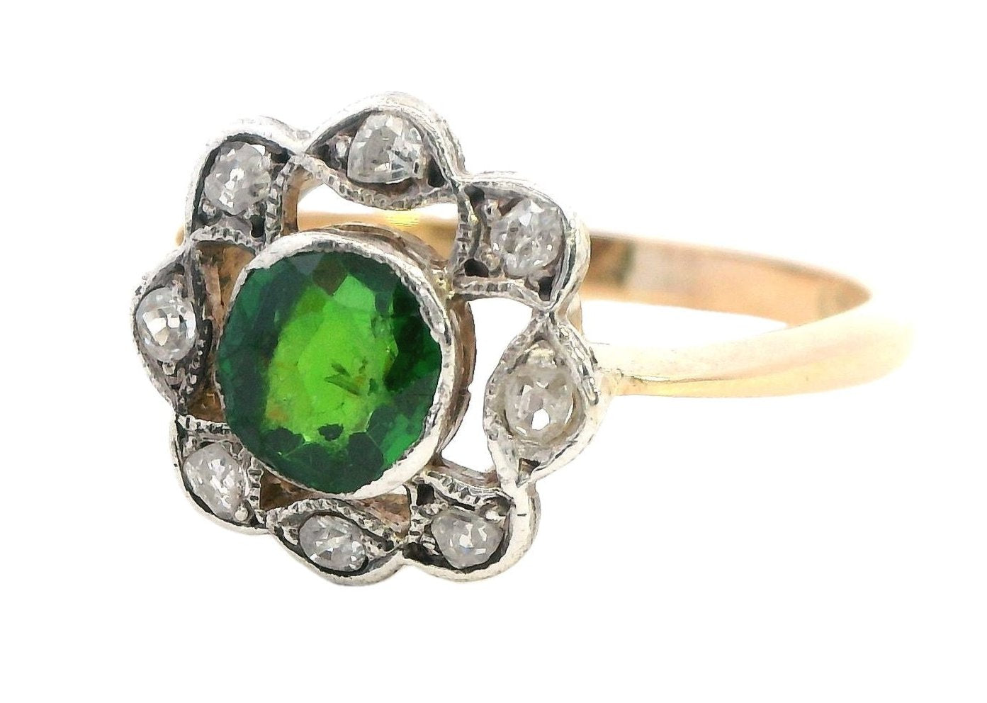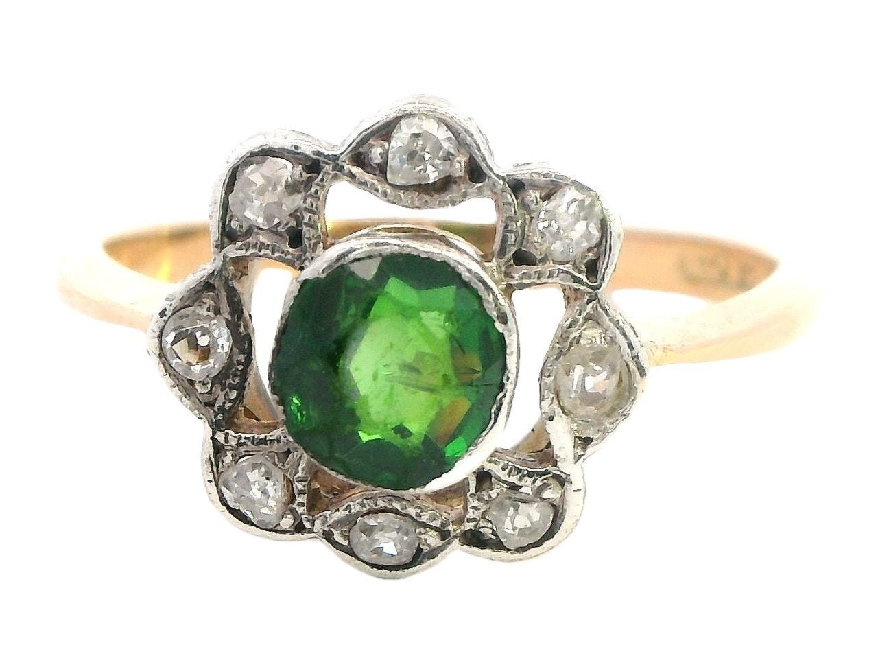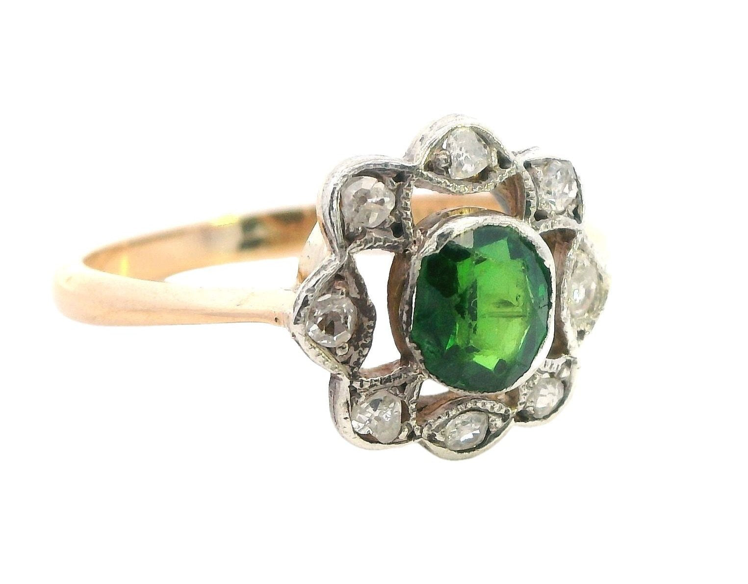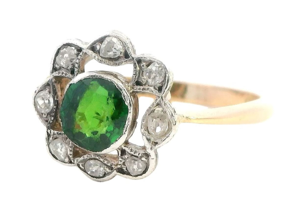 Elegant 18ct Yellow & White Gold Demantoid Garnet & Diamond Ring