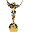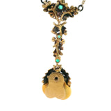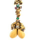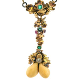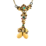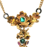 14ct & 9ct Yellow Gold Emerald, Ruby, Diamond & Acorn Seed Vintage Necklet