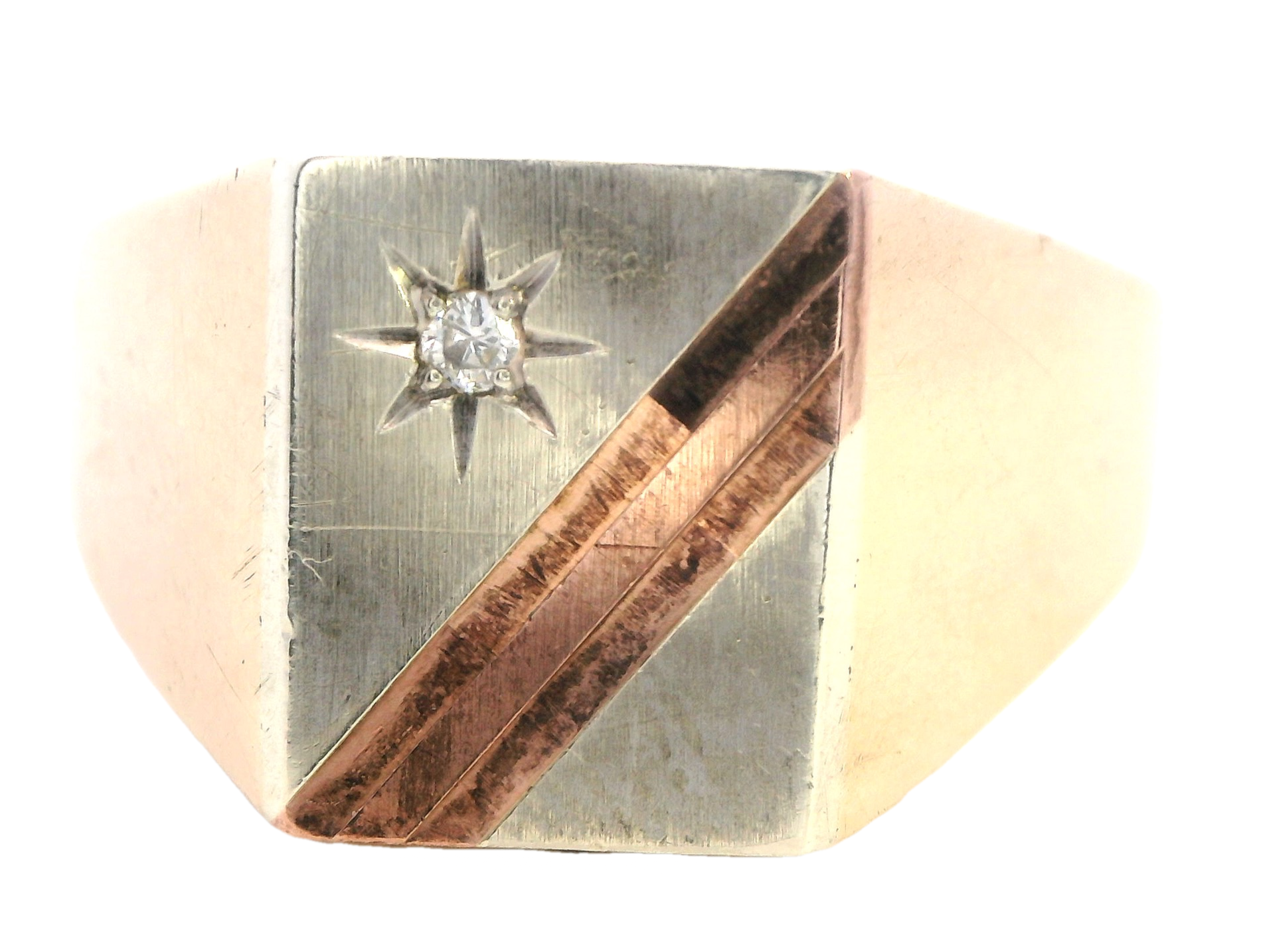 This elegant 9ct yellow, white, and rose gold single stone diamond ring is the perfect choice for the discerning gentleman. Its unique blend of gold tones, combined with the sparkle of a brilliant cut diamond, makes it a standout piece that exudes sophistication. Whether as a special gift or a luxurious addition to his collection, this ring from The Exclusive Jewellery and Antiques Company is a timeless investment in style.