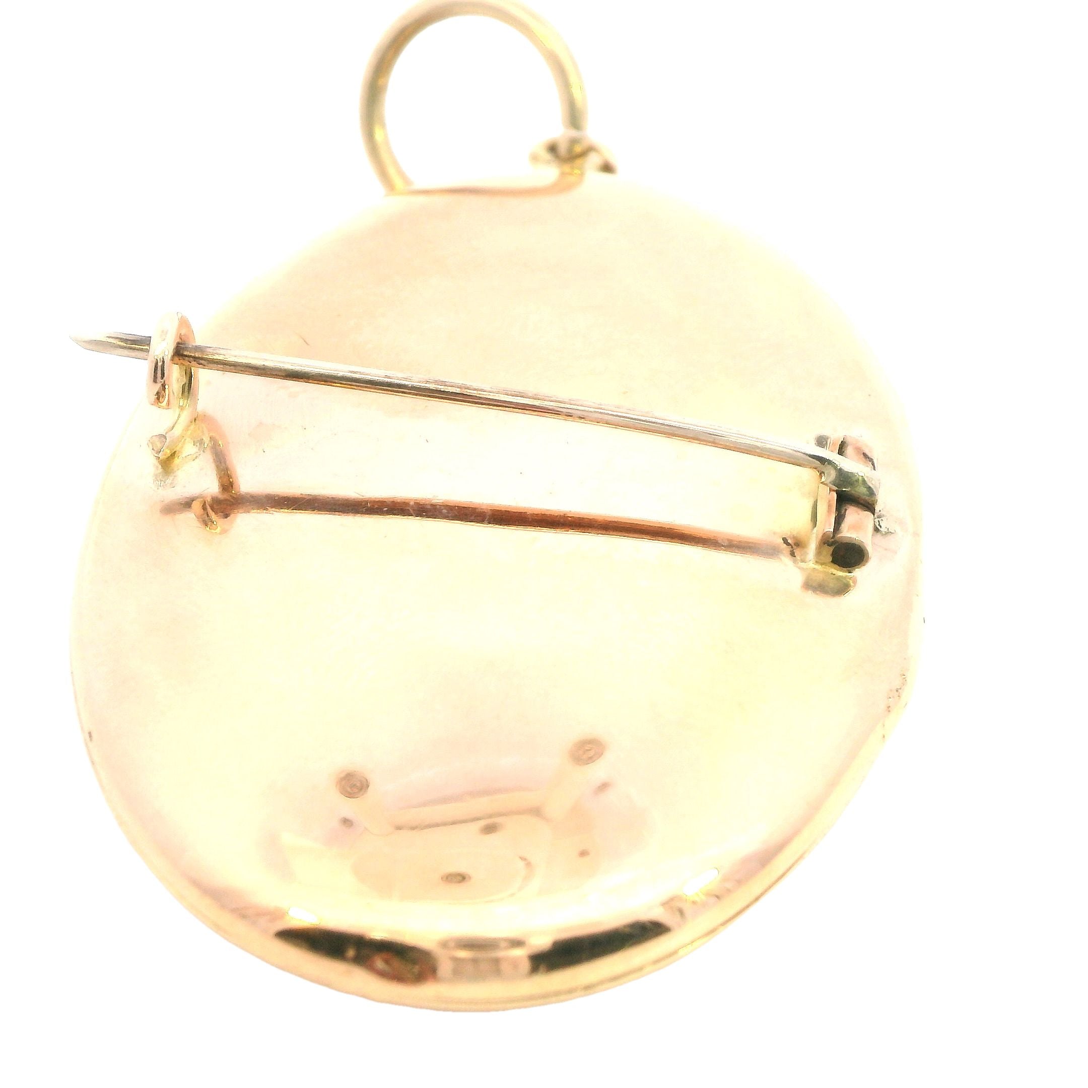 Pressed and Assembled Oval Yellow Gold Opening Brooch Pendant Locket