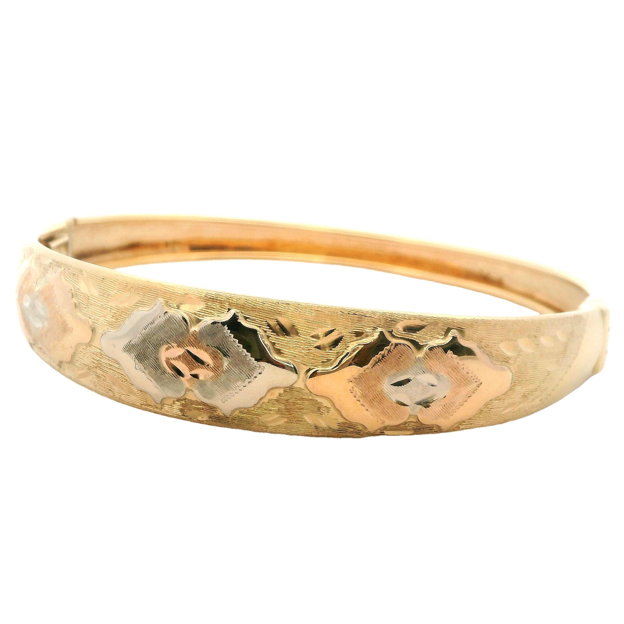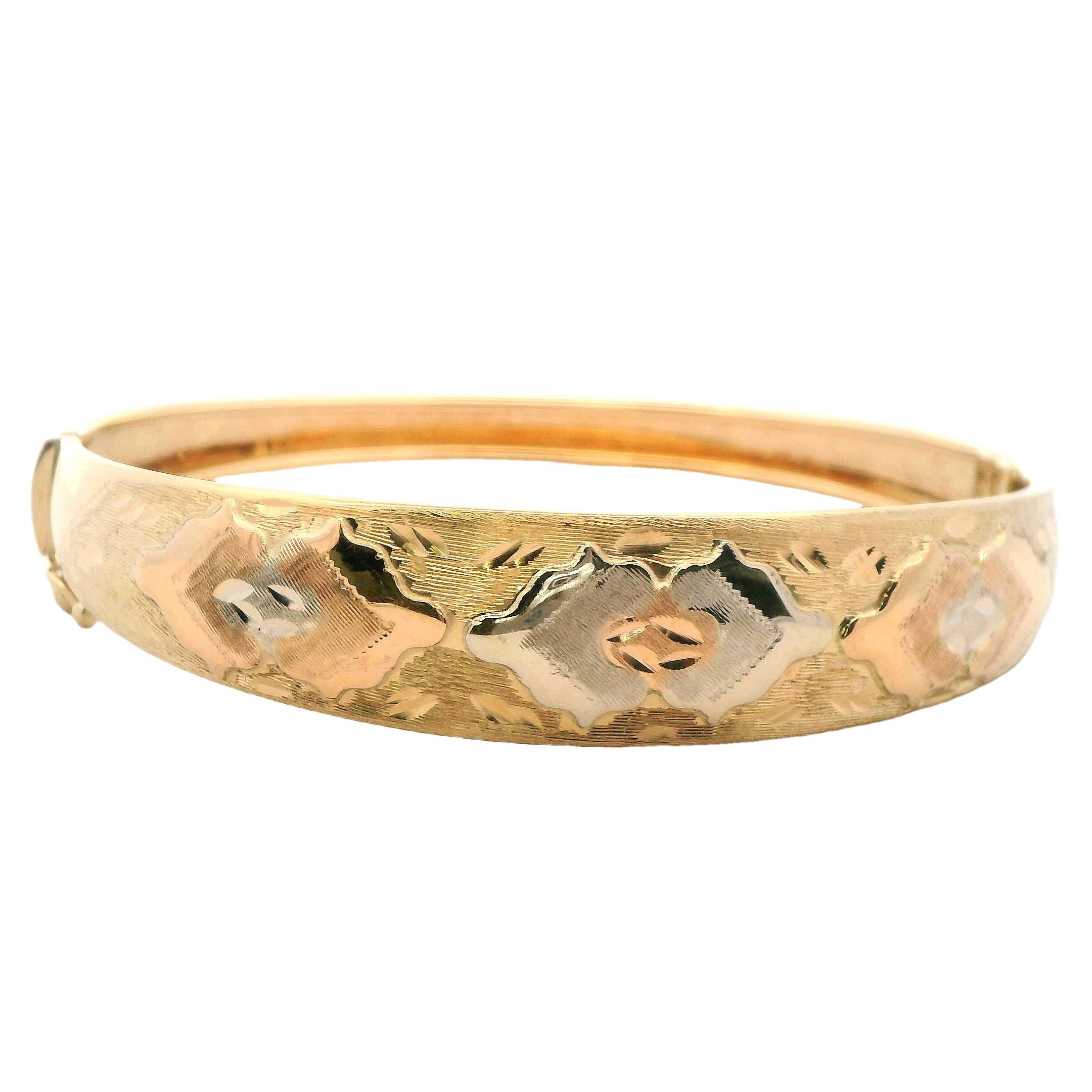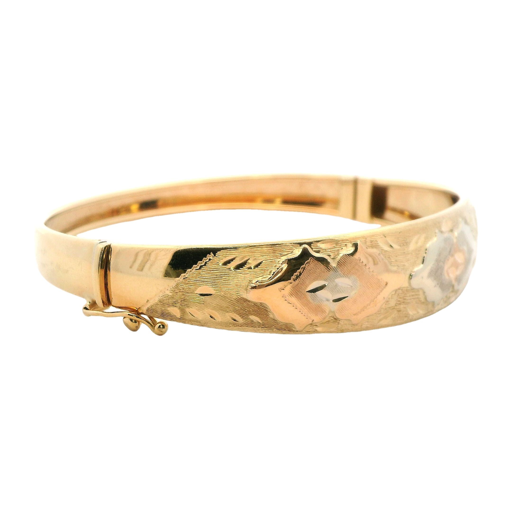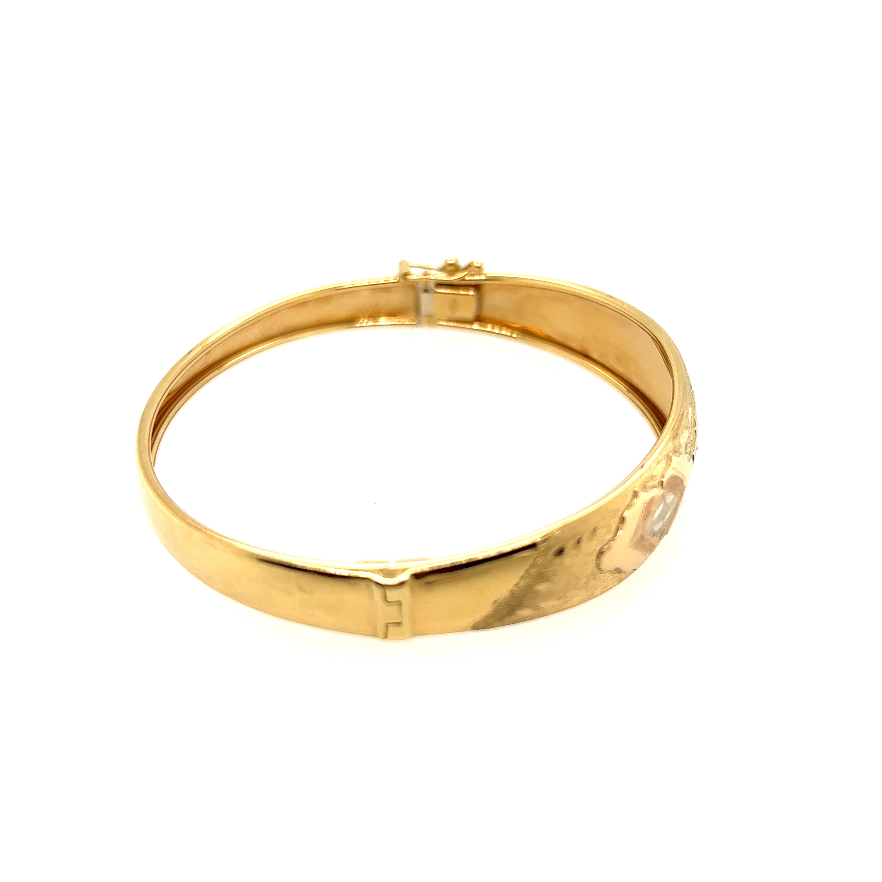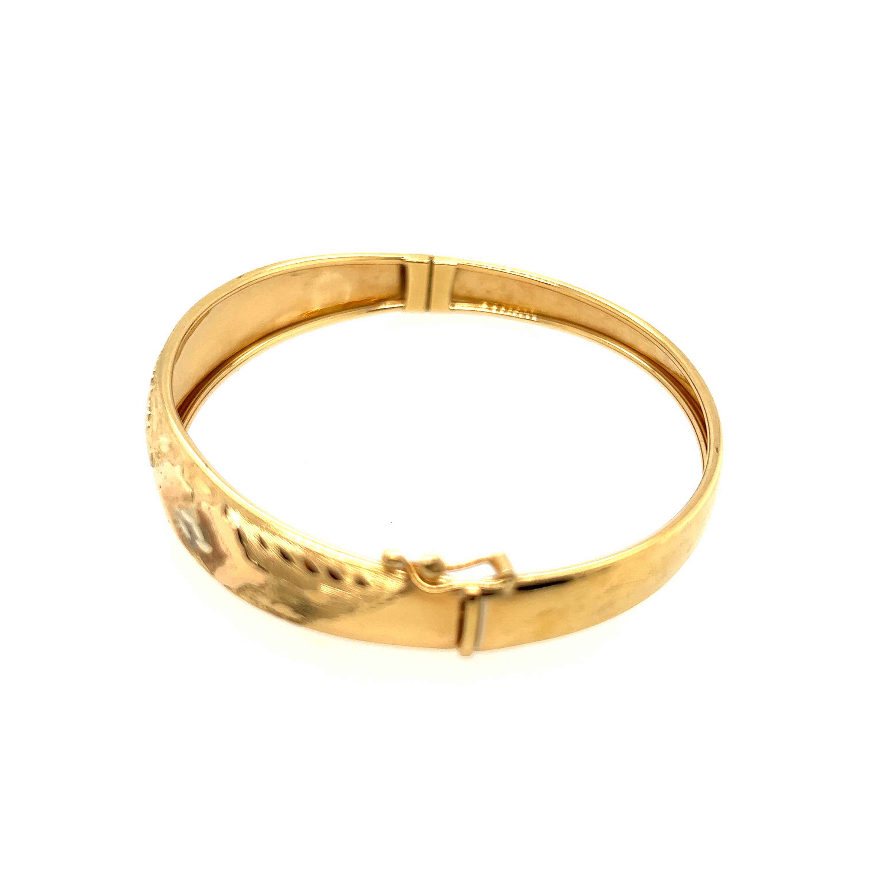 Elegant 18ct Yellow Gold Engraved Hinged Bangle – A Timeless Investment in Luxury