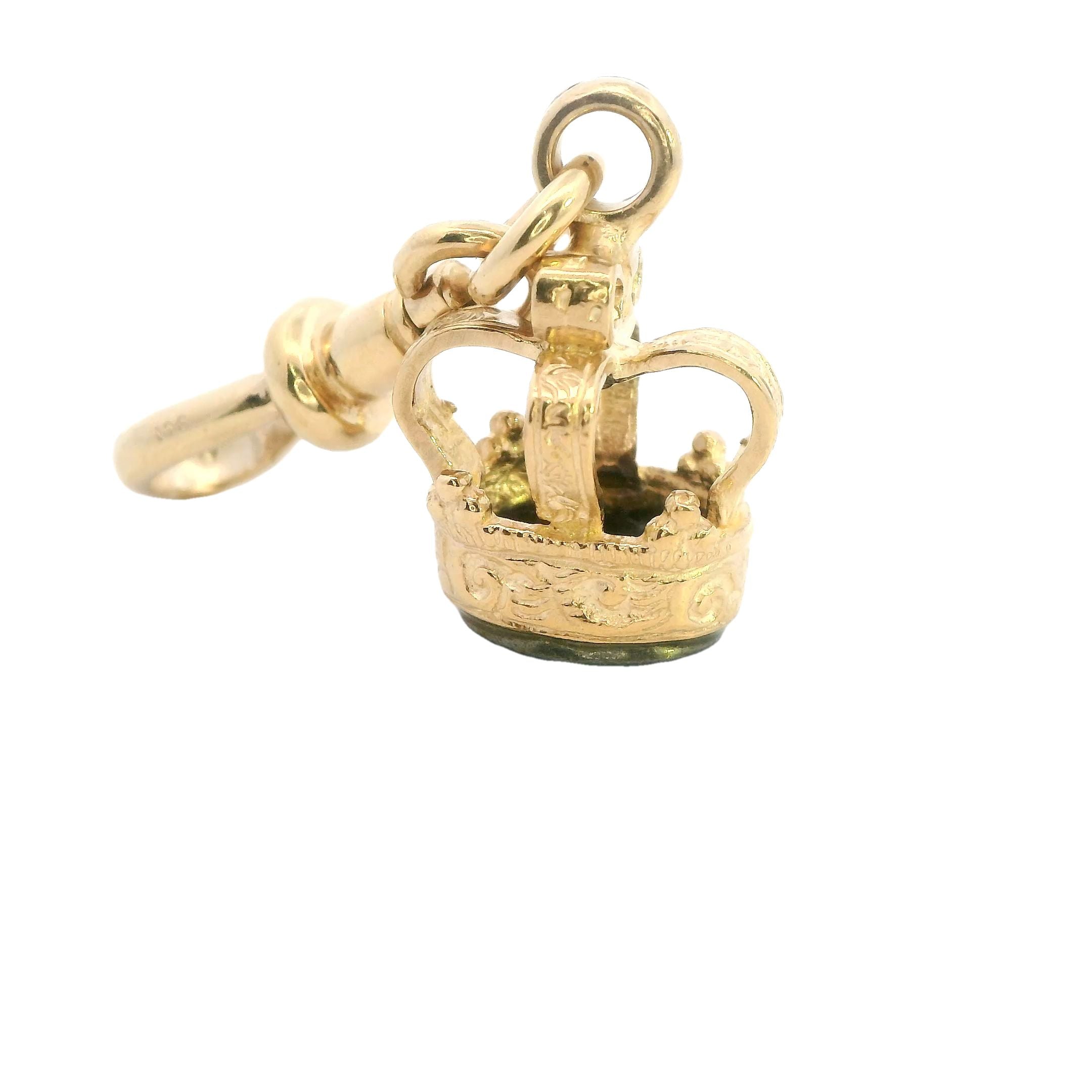 A beautiful choice for a man’s fob chain or worn as a pendant, this vintage Albert swivel and crown pendant is a piece of history and timeless style, making it a wonderful investment in gold and heritage jewelry.