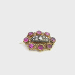 9ct Yellow Gold Ruby & Diamond Victorian Brooch