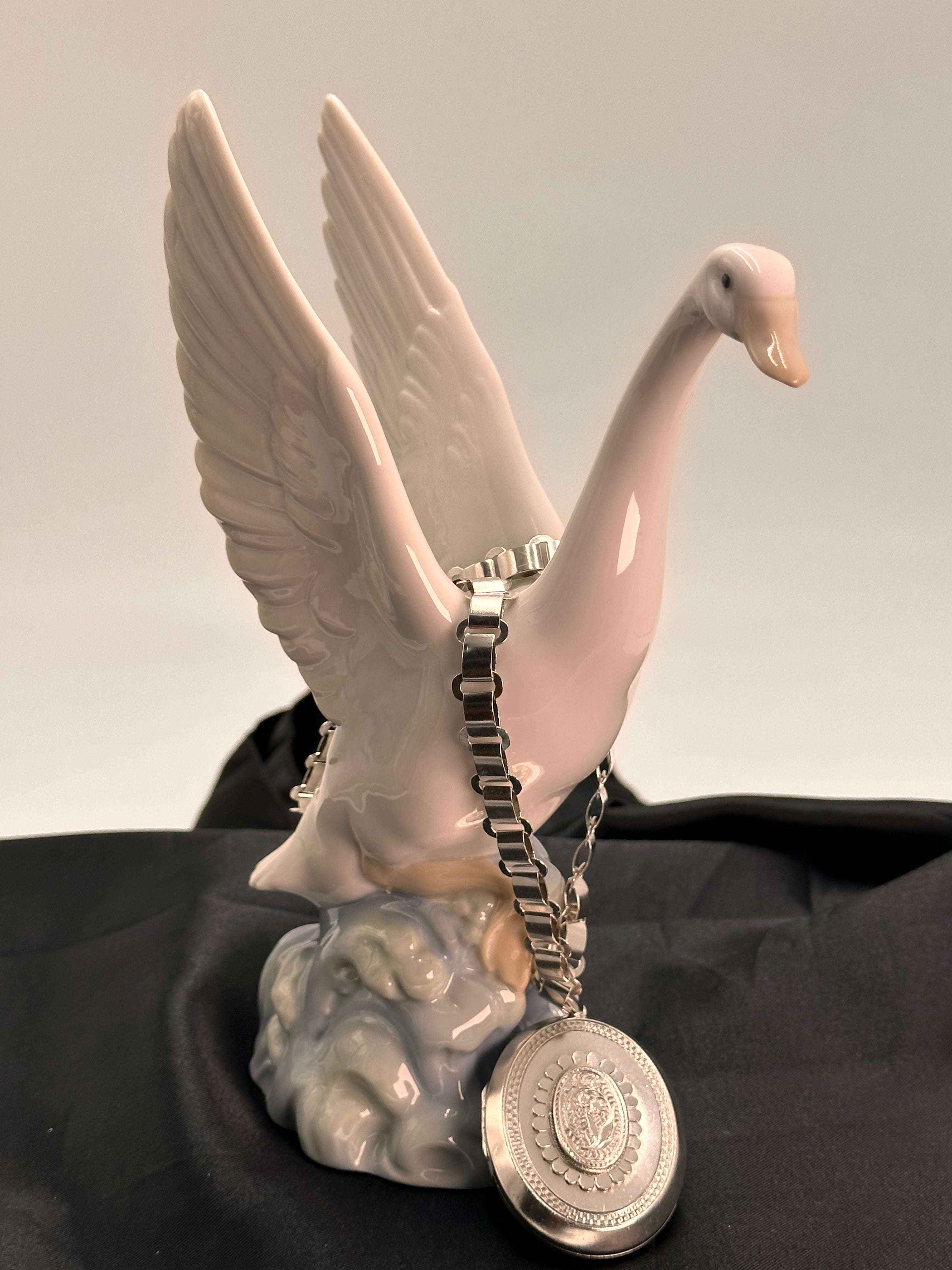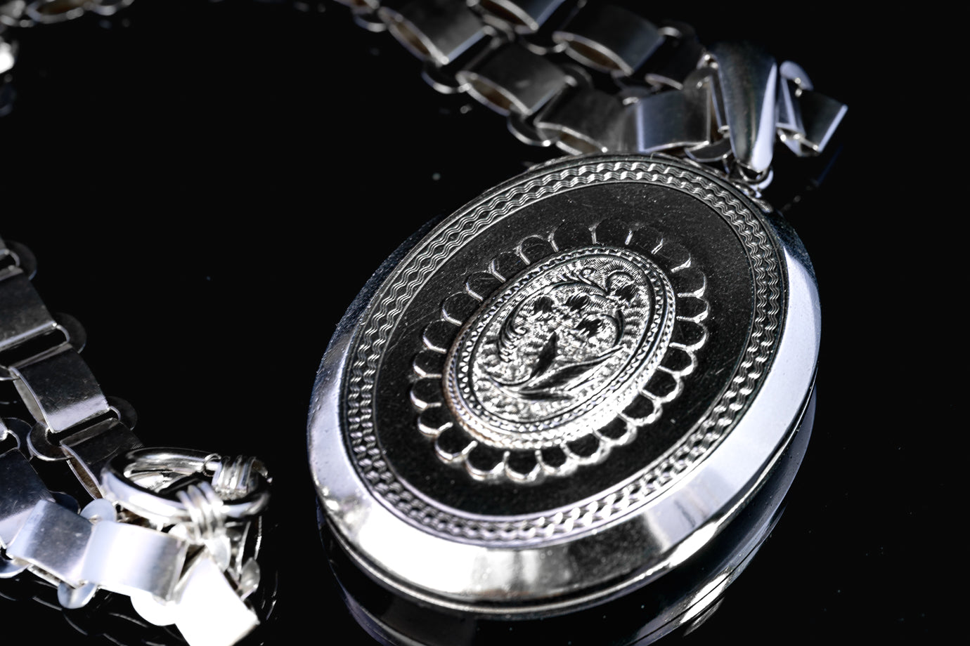 Presenting a priceless heirloom, a rare and enchanting Antique Silver Book Chain and Locket, waiting for a discerning collector to add to their trove of treasures.