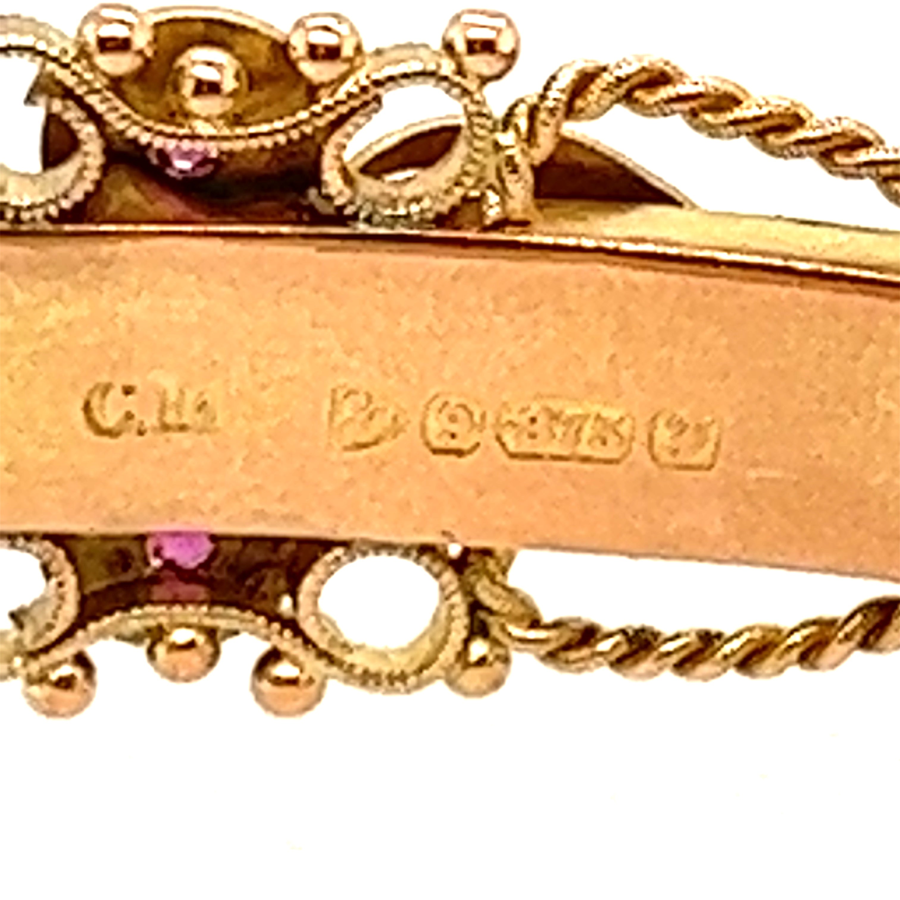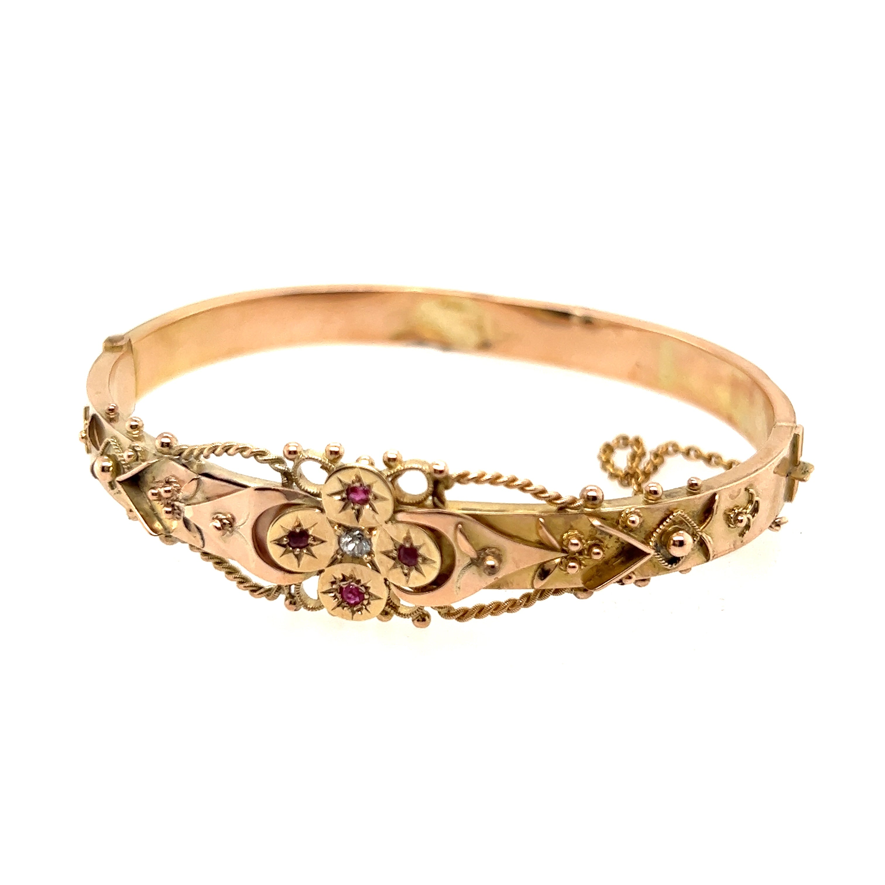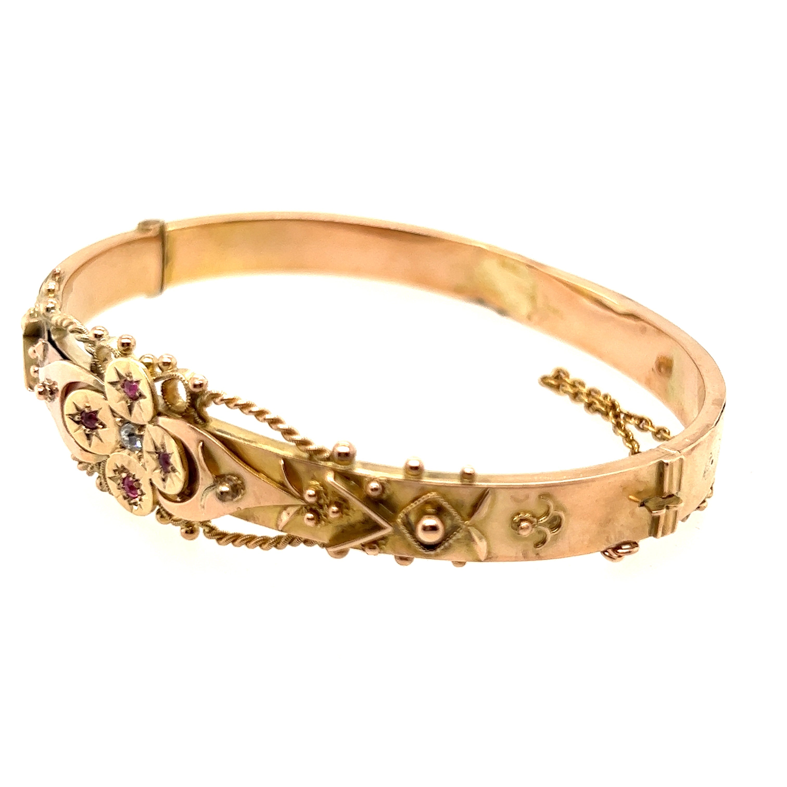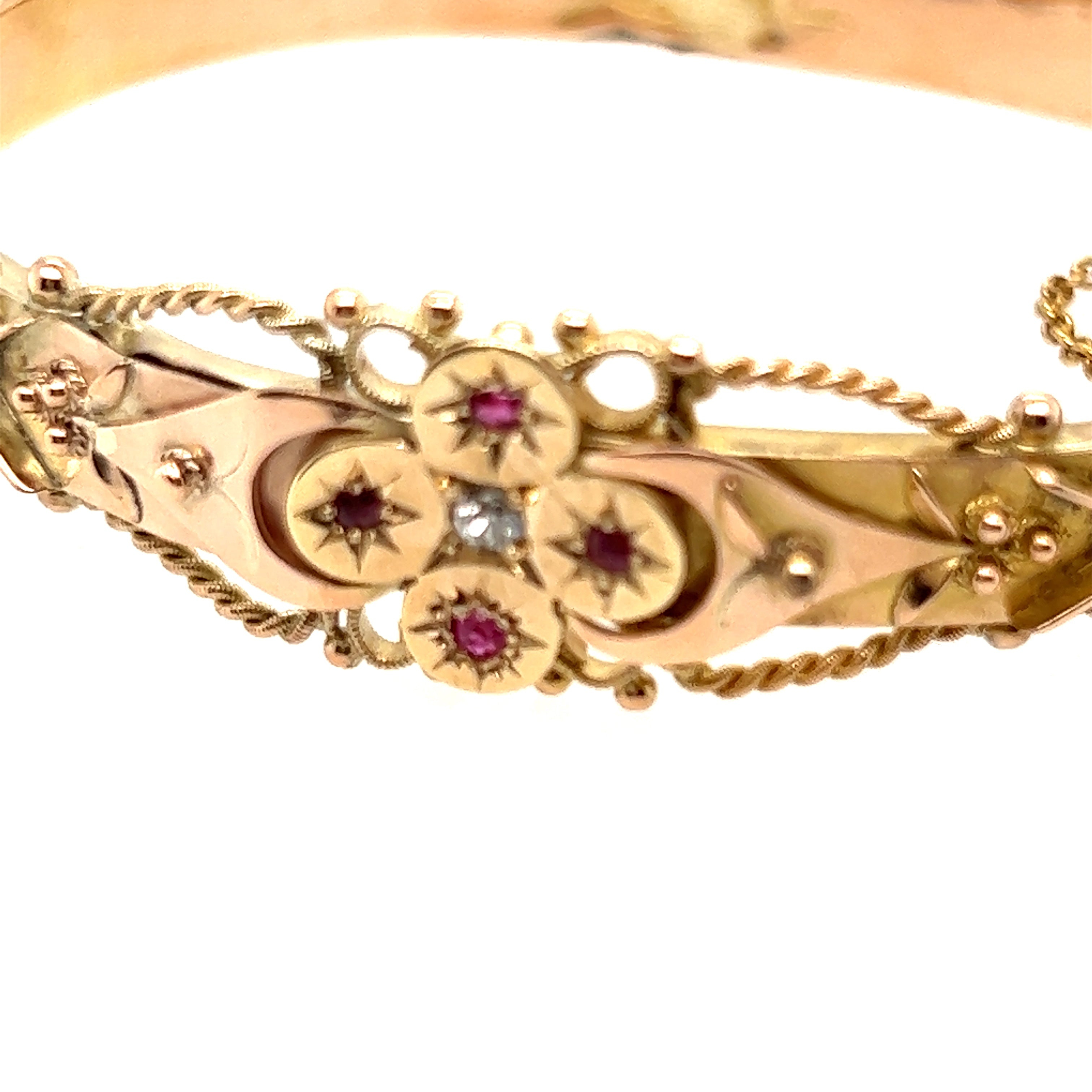 Antique Yellow Gold Bangle with Diamond and Rubies