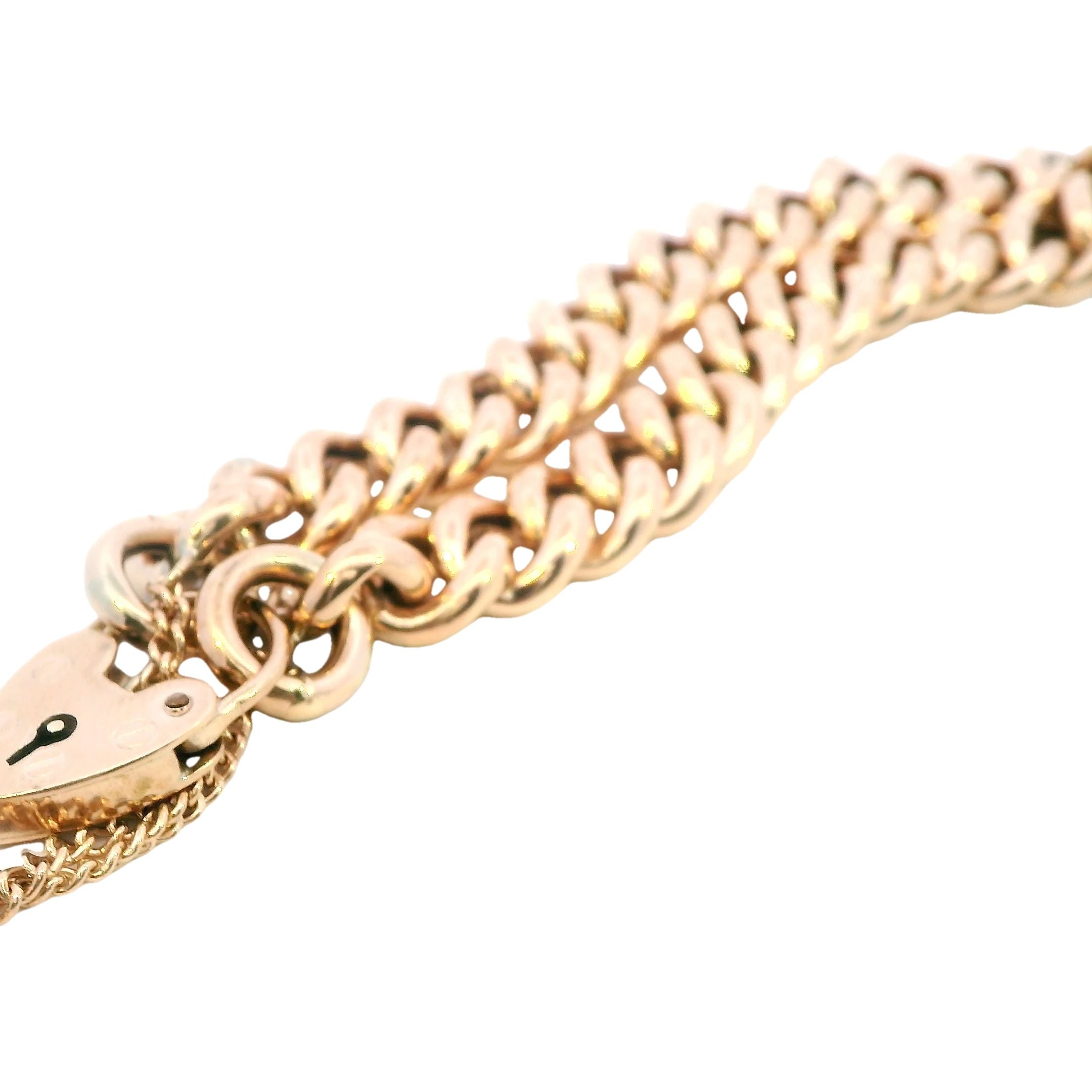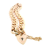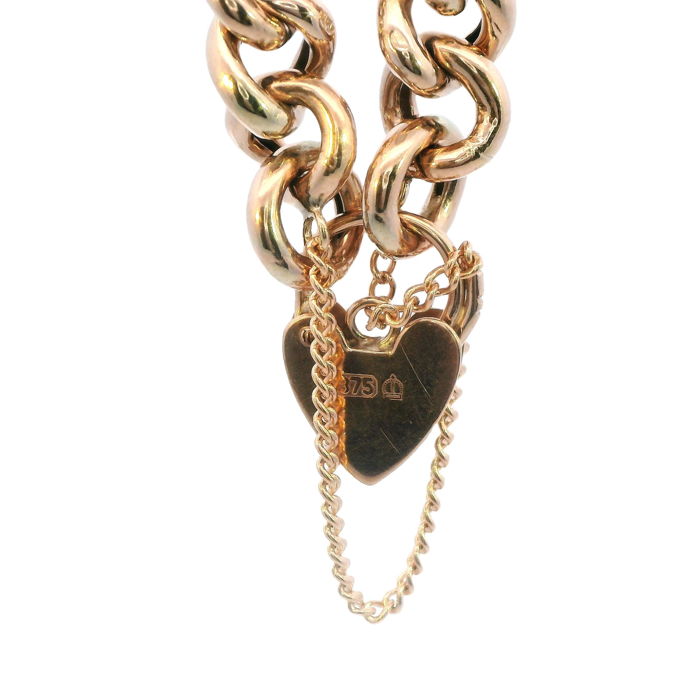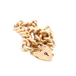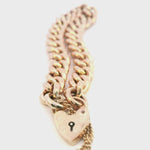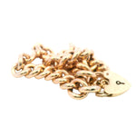 Exquisite 9ct Rose Gold Curb Link Bracelet with Heart Padlock & Safety Chain