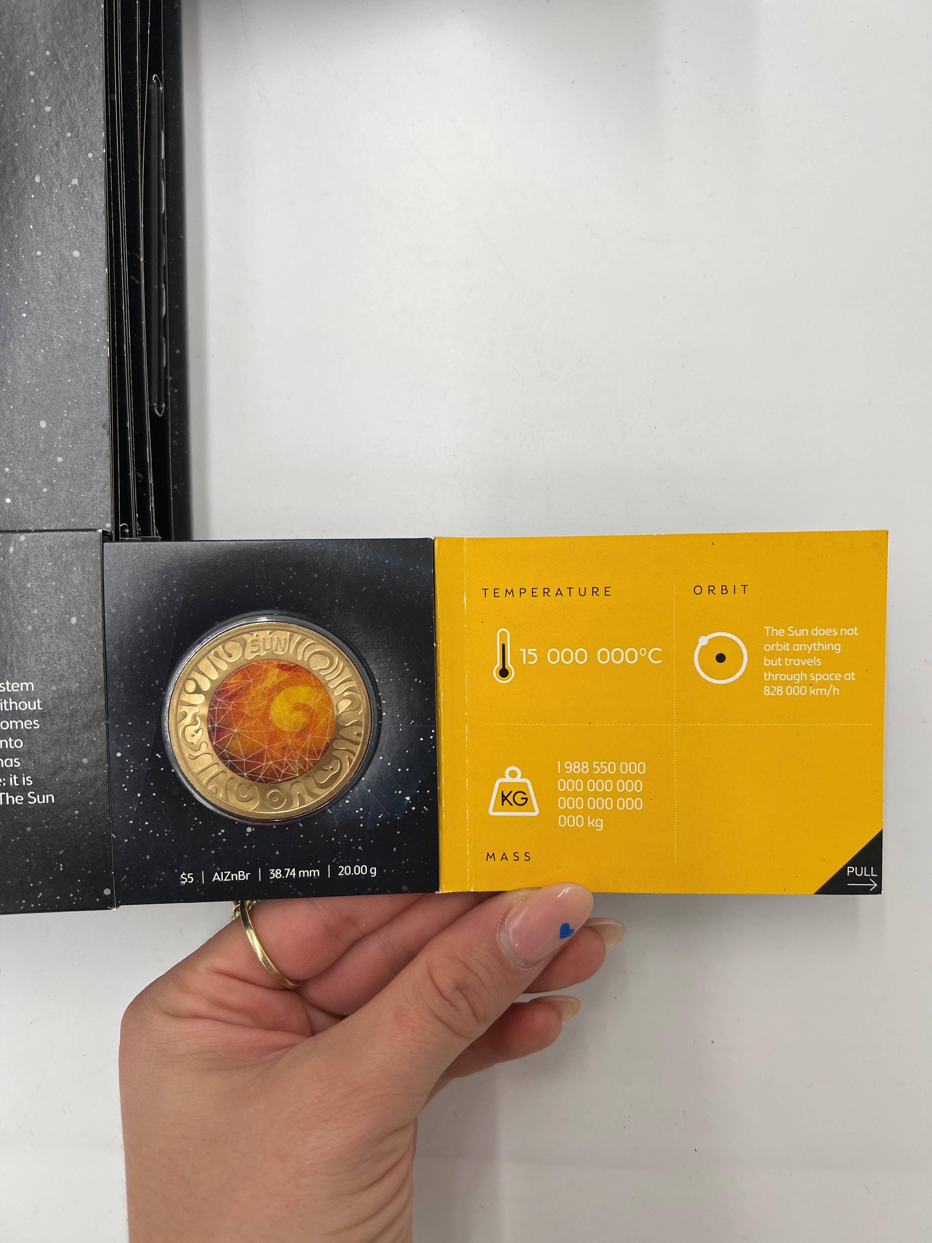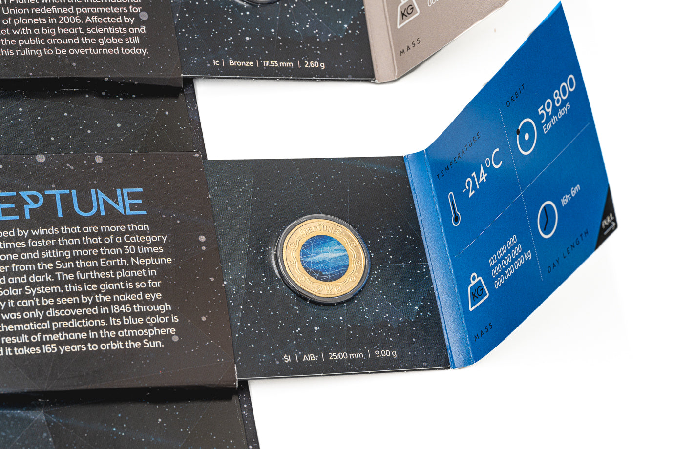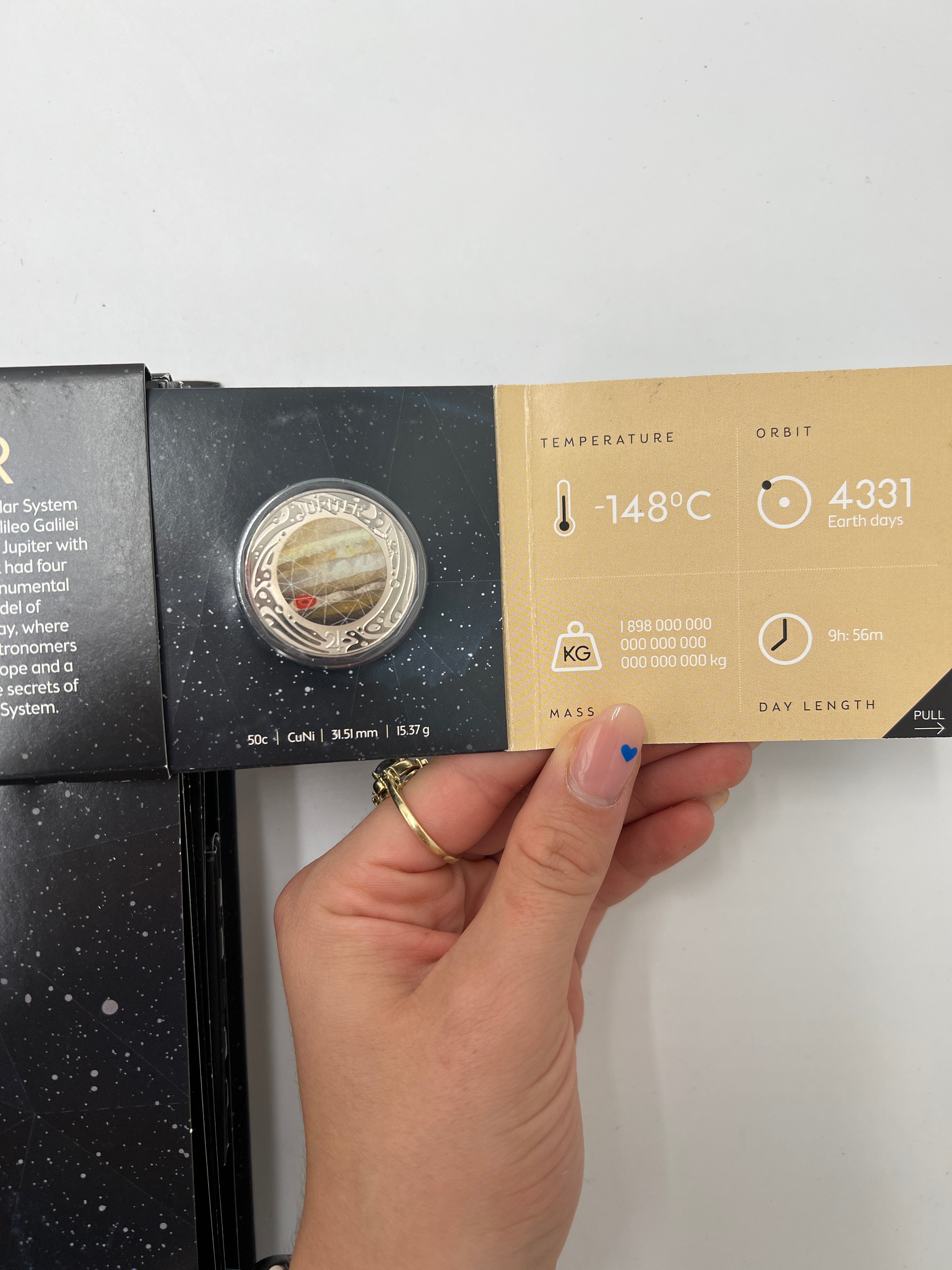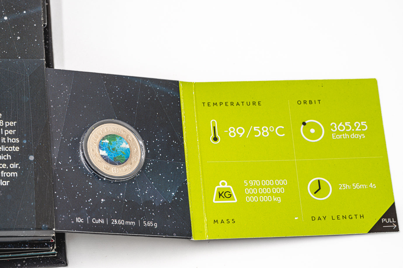 • Complete set of 10 coins (Sun, Mercury, Venus, Earth, Mars, Jupiter, Saturn, Uranus, Neptune, Pluto)