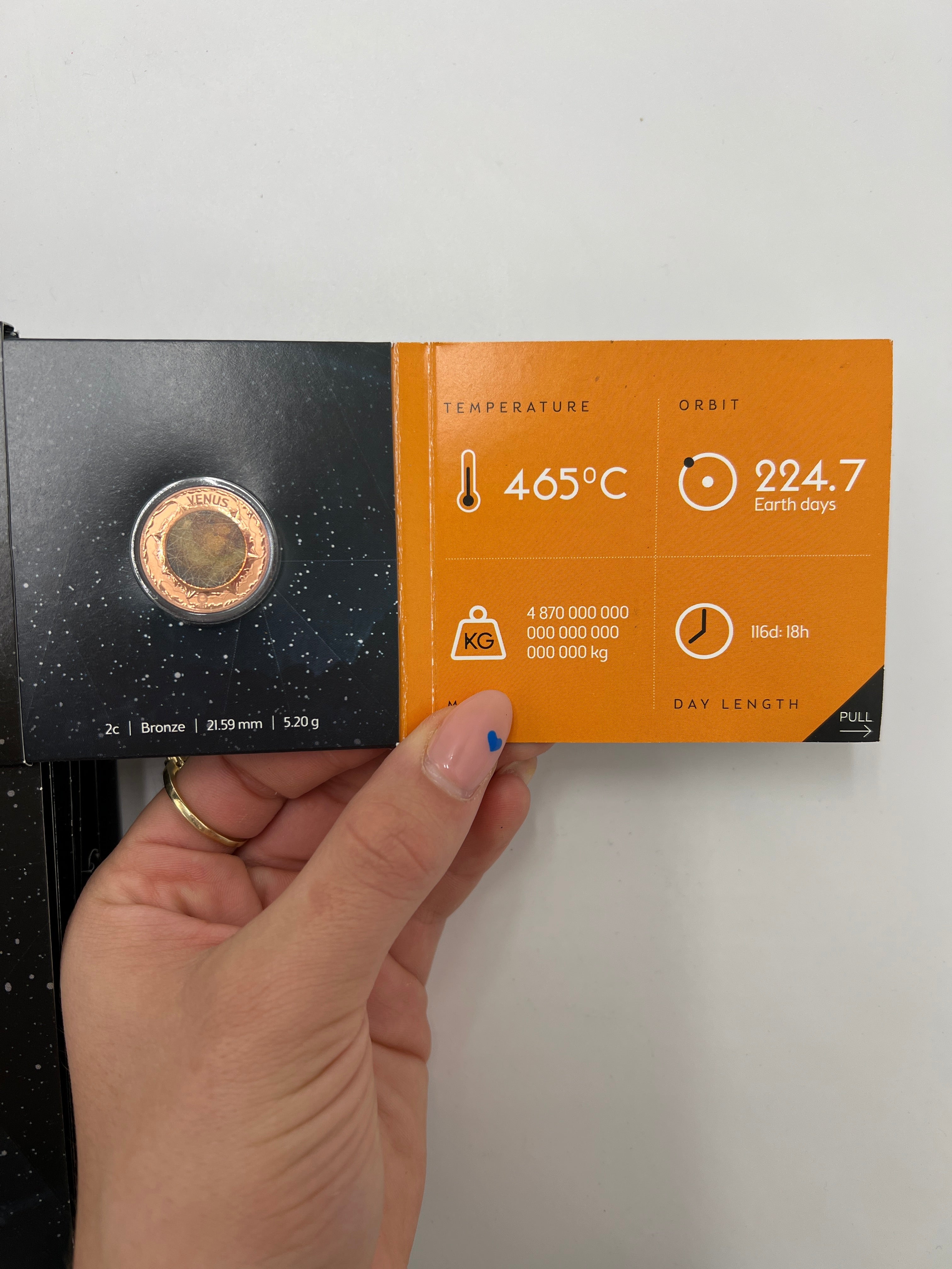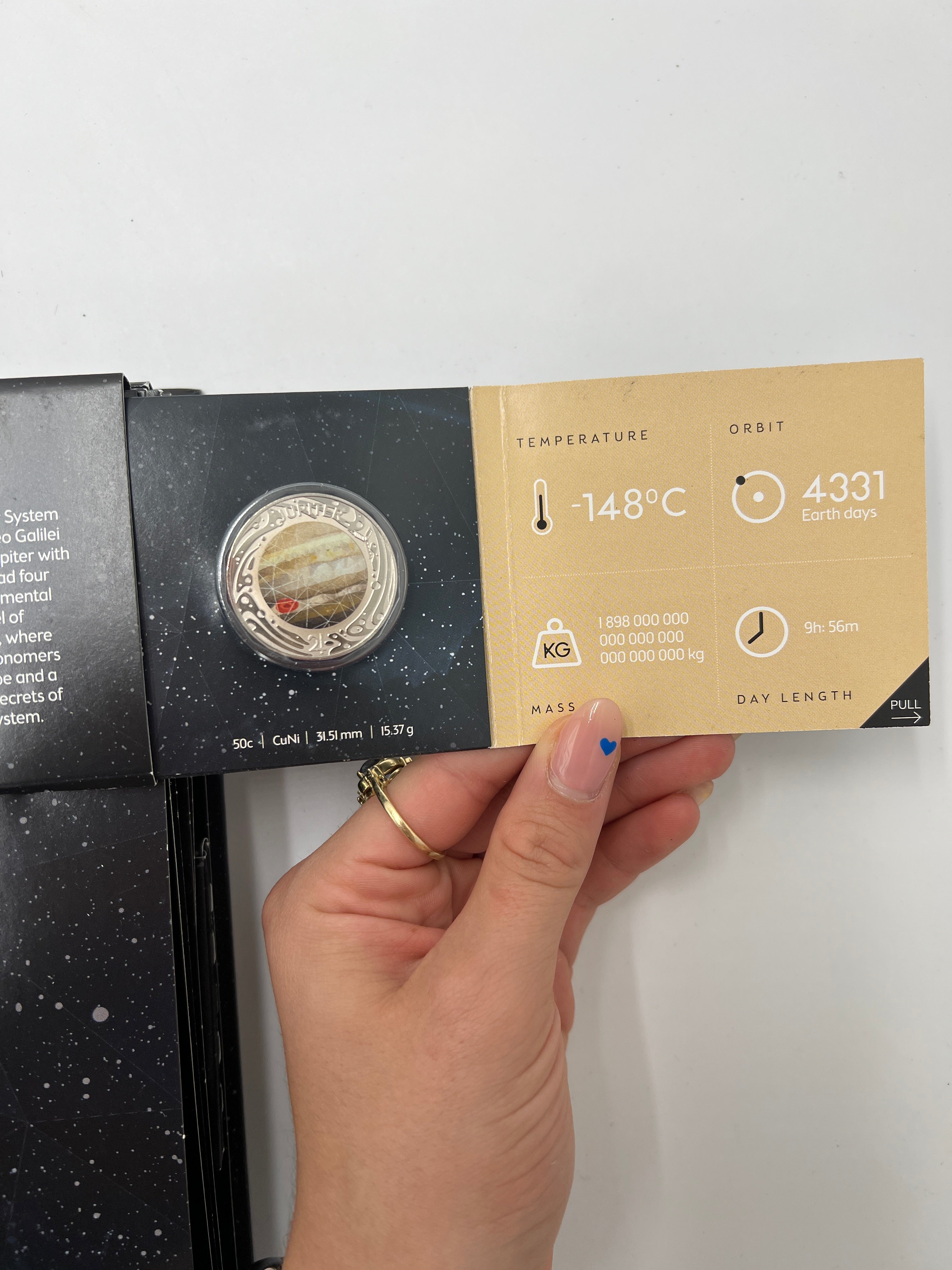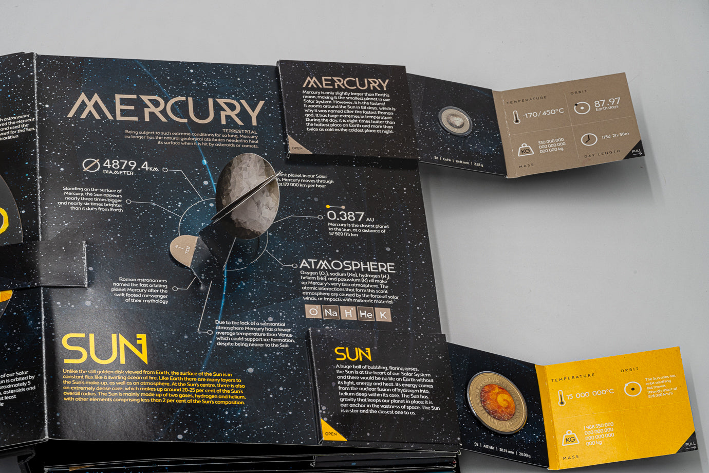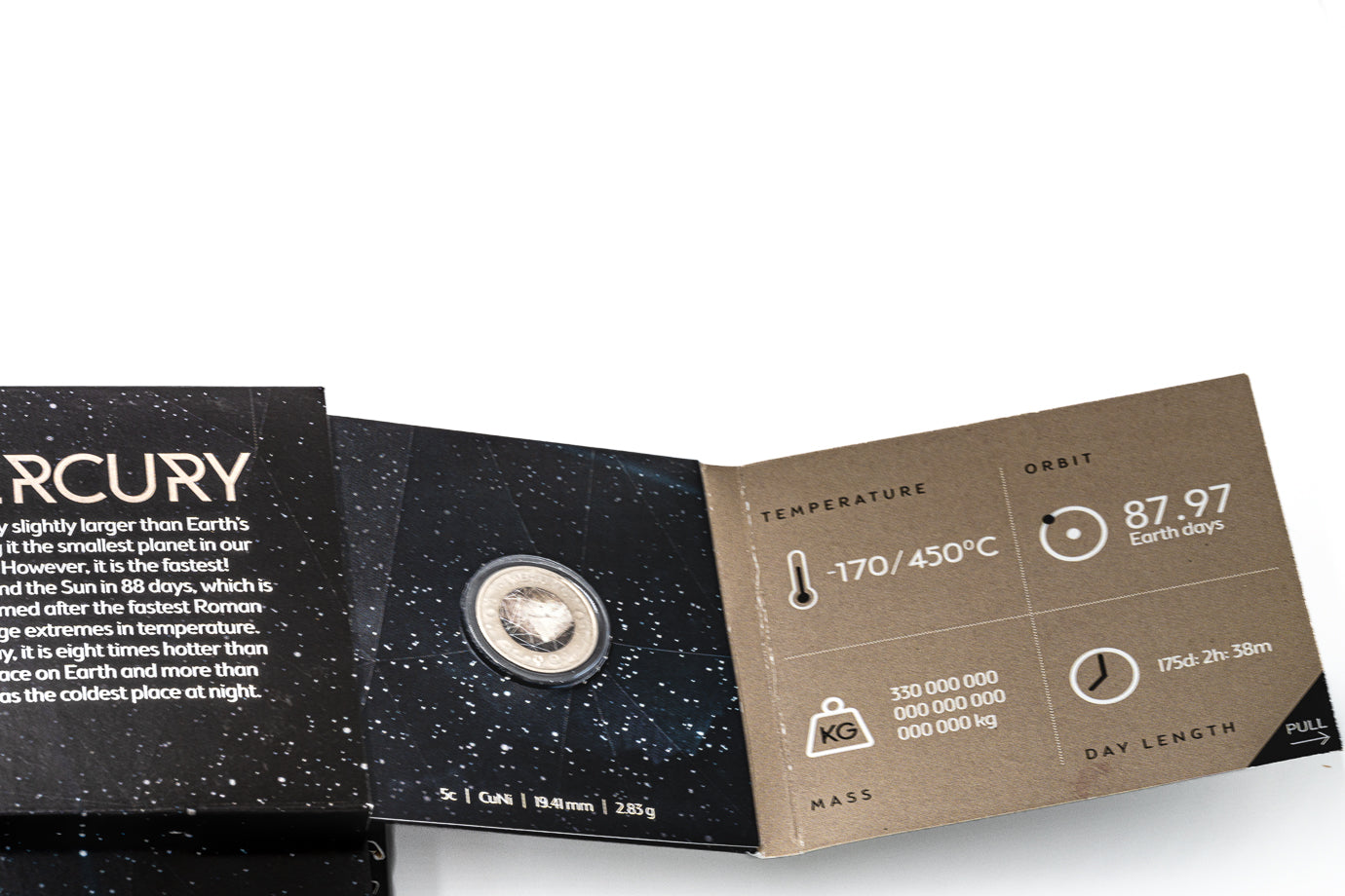 • Complete set of 10 coins (Sun, Mercury, Venus, Earth, Mars, Jupiter, Saturn, Uranus, Neptune, Pluto)