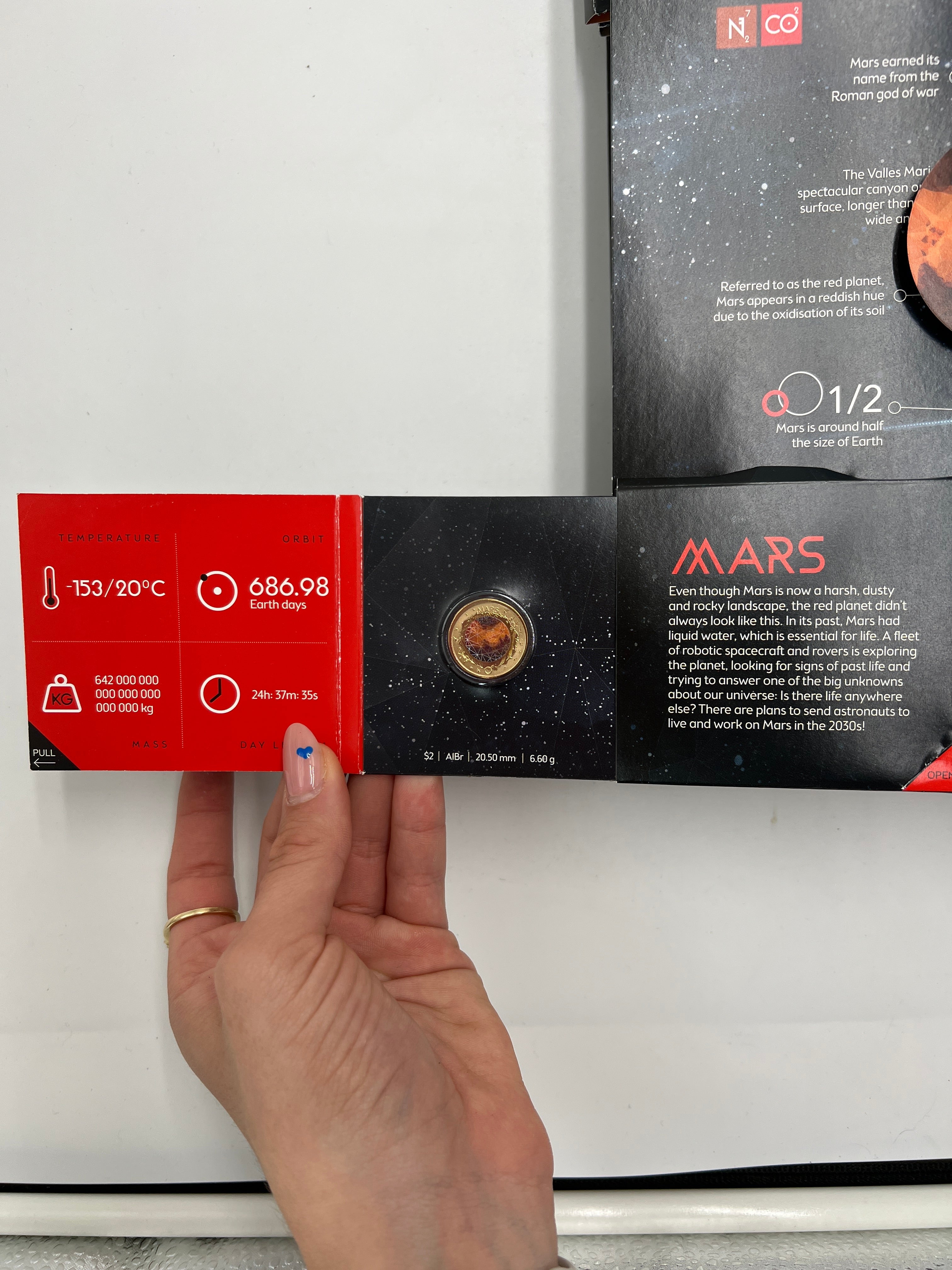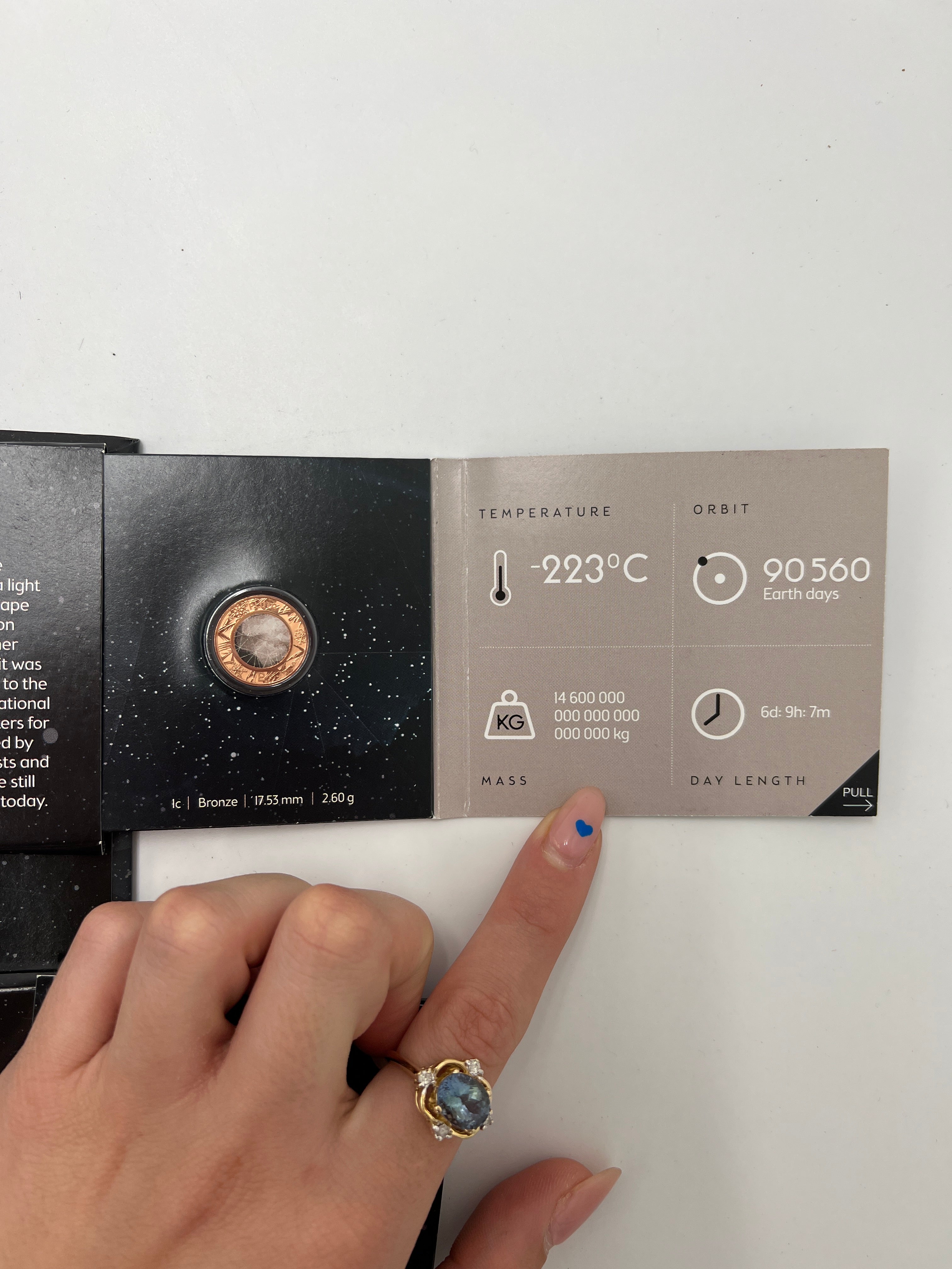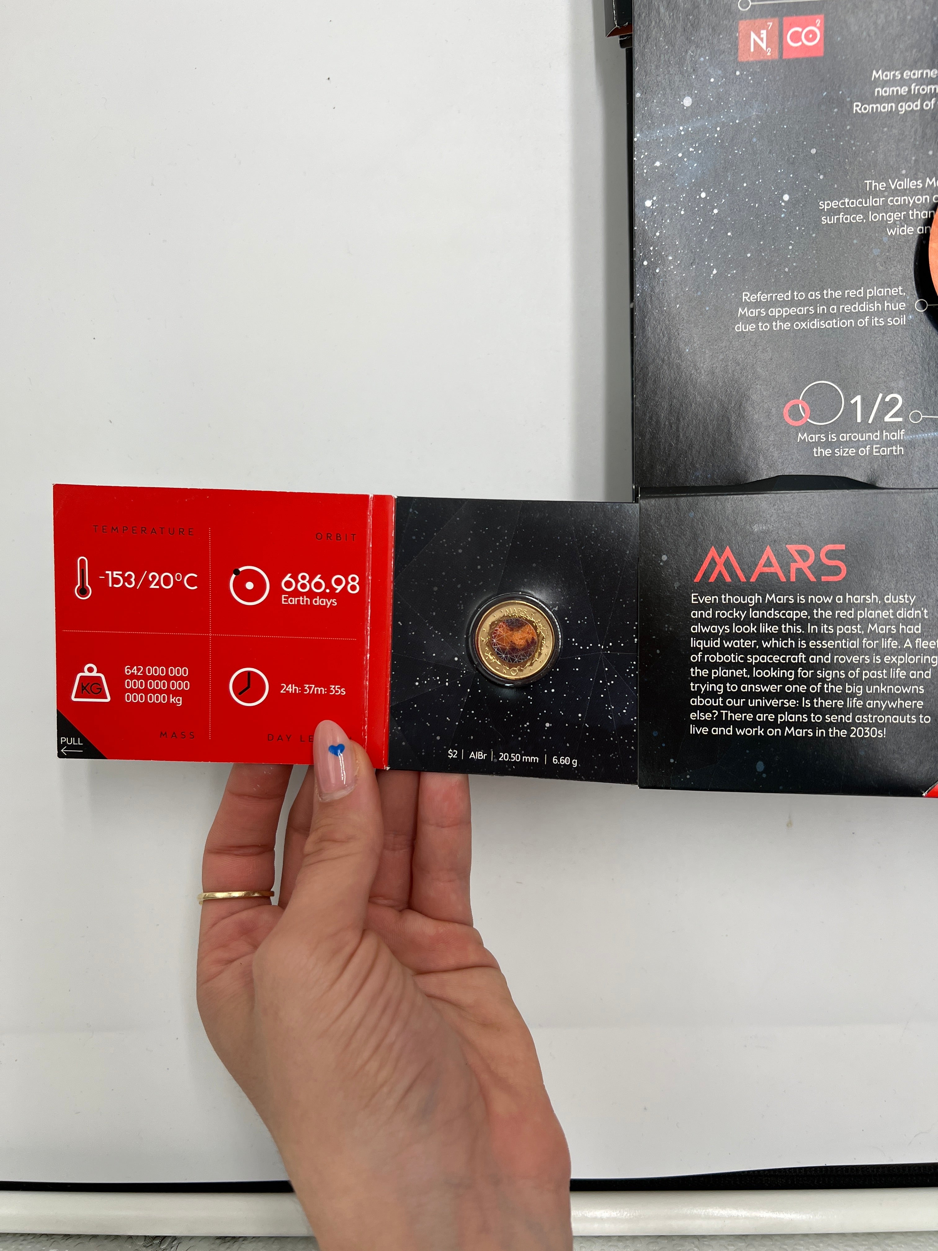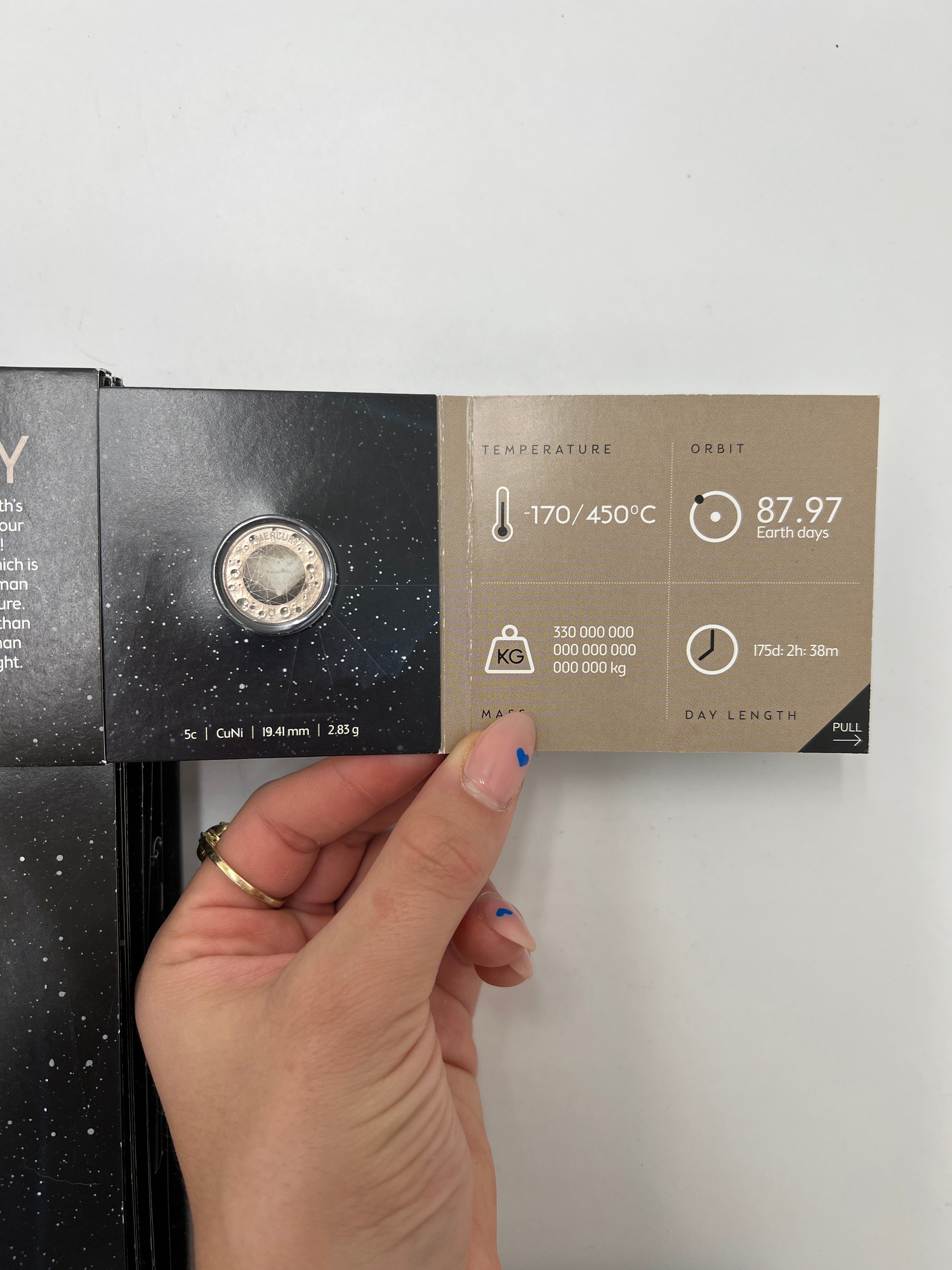• Complete set of 10 coins (Sun, Mercury, Venus, Earth, Mars, Jupiter, Saturn, Uranus, Neptune, Pluto)