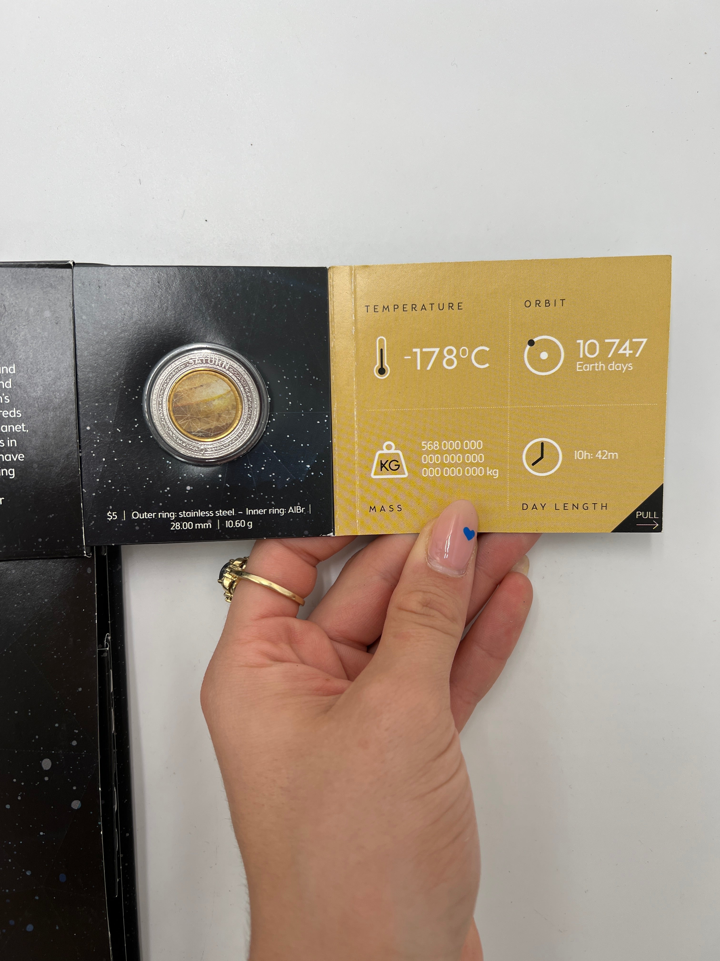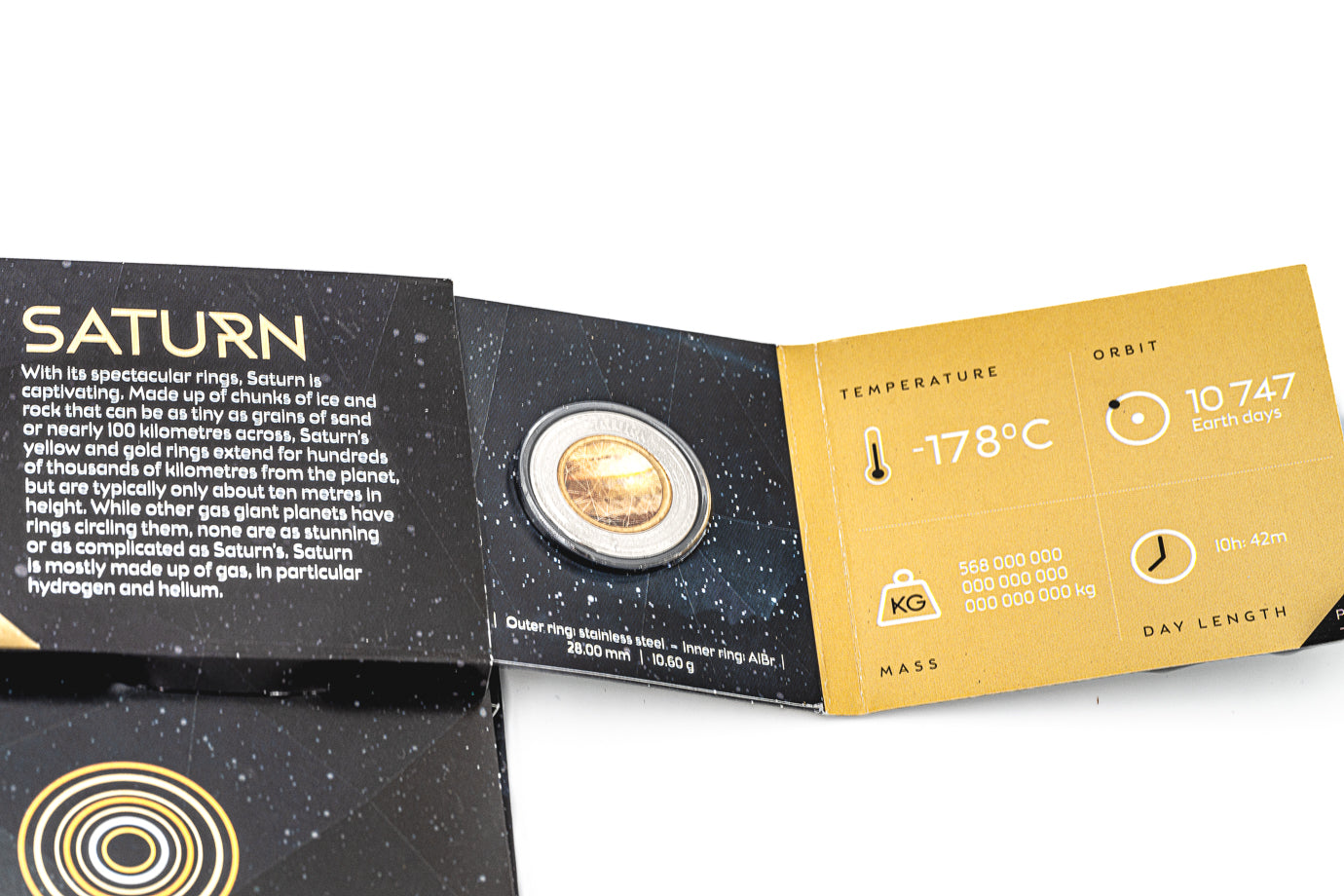 • A special bi-metallic coin for Saturn, symbolising its iconic rings