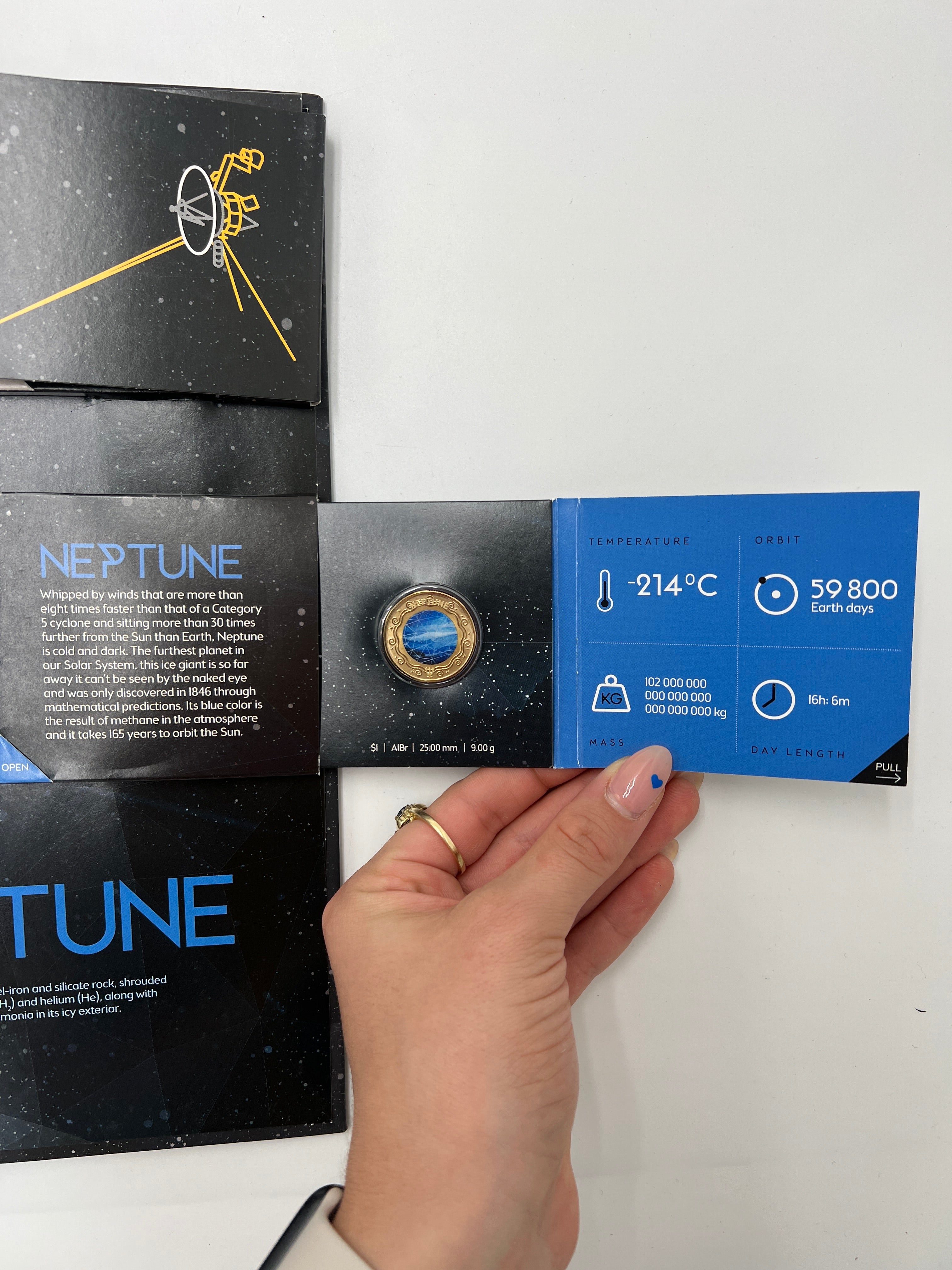 Presented in a beautifully designed interactive pop-up book, this set is the first of its kind—uniting ten vibrant coins that represent the Sun, all eight planets, and dwarf planet Pluto. A true celebration of space, science, and artistic innovation, this release brings the universe to your fingertips in a way never seen before.