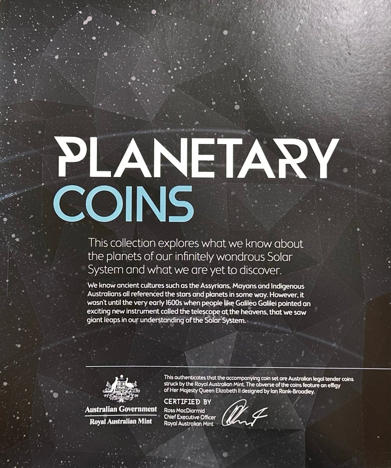 Embark on an interstellar adventure with this rare and exclusive 2017 Planetary Coin Set, a striking collector’s edition from the Royal Australian Mint that captures the awe of our Solar System in vivid colour and exquisite detail.